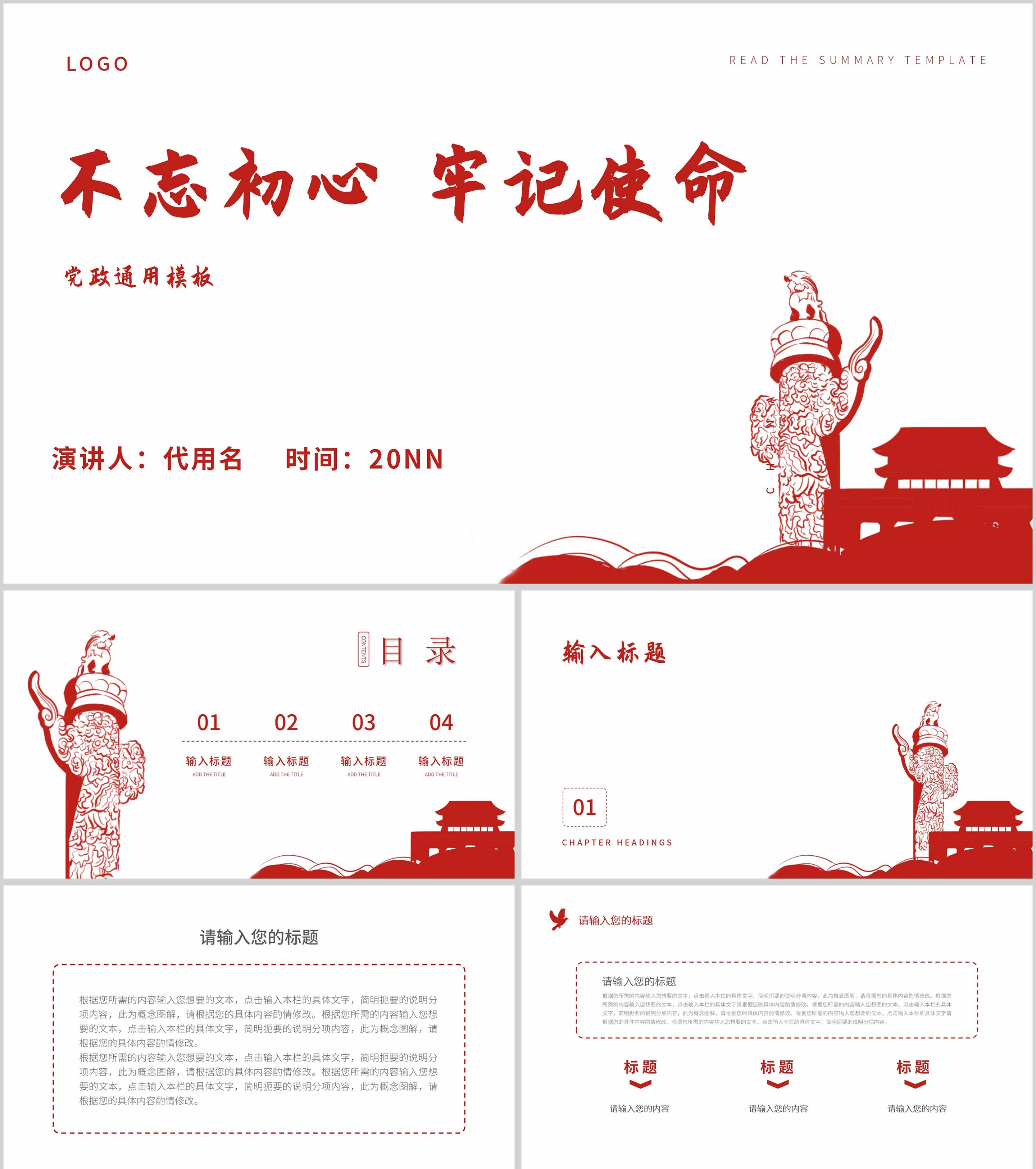红色喜庆不忘初心牢记使命PPT模板