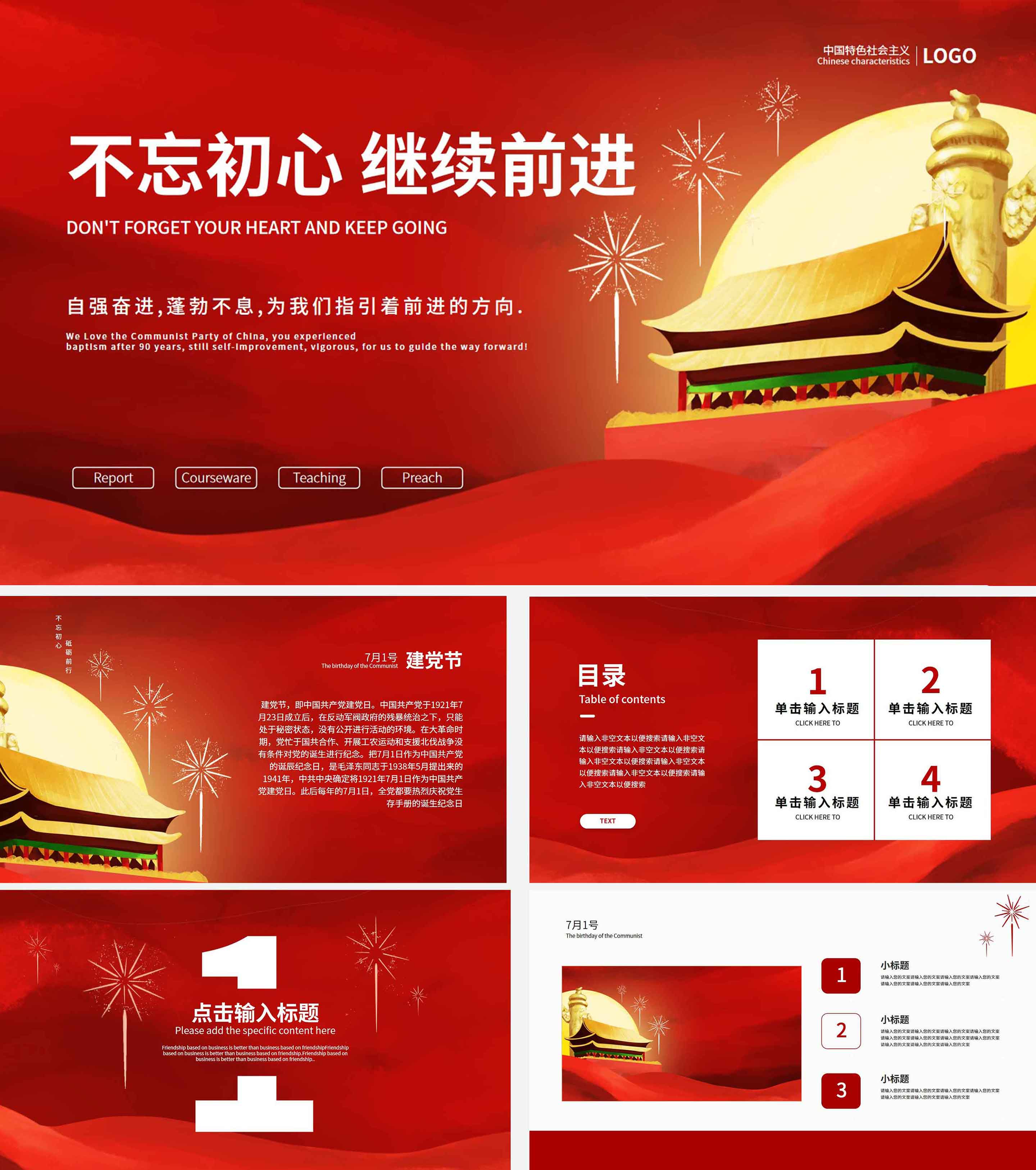 红色不忘初心继续前进建党节PPT模板