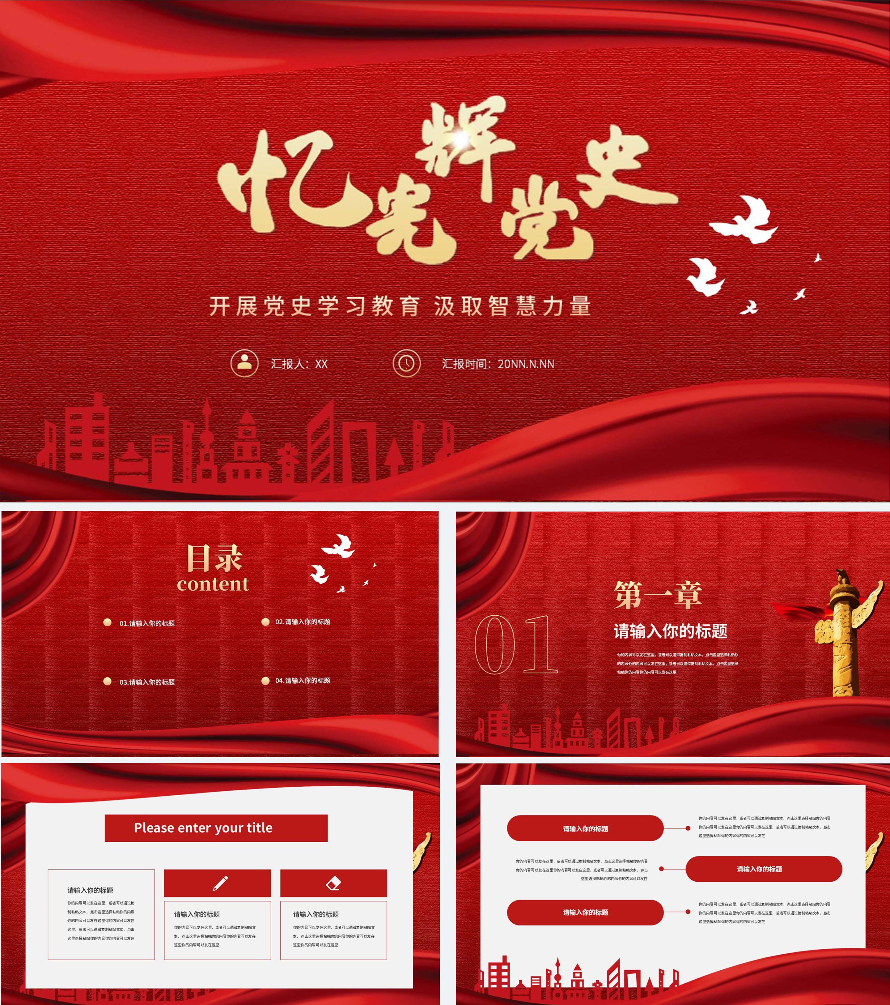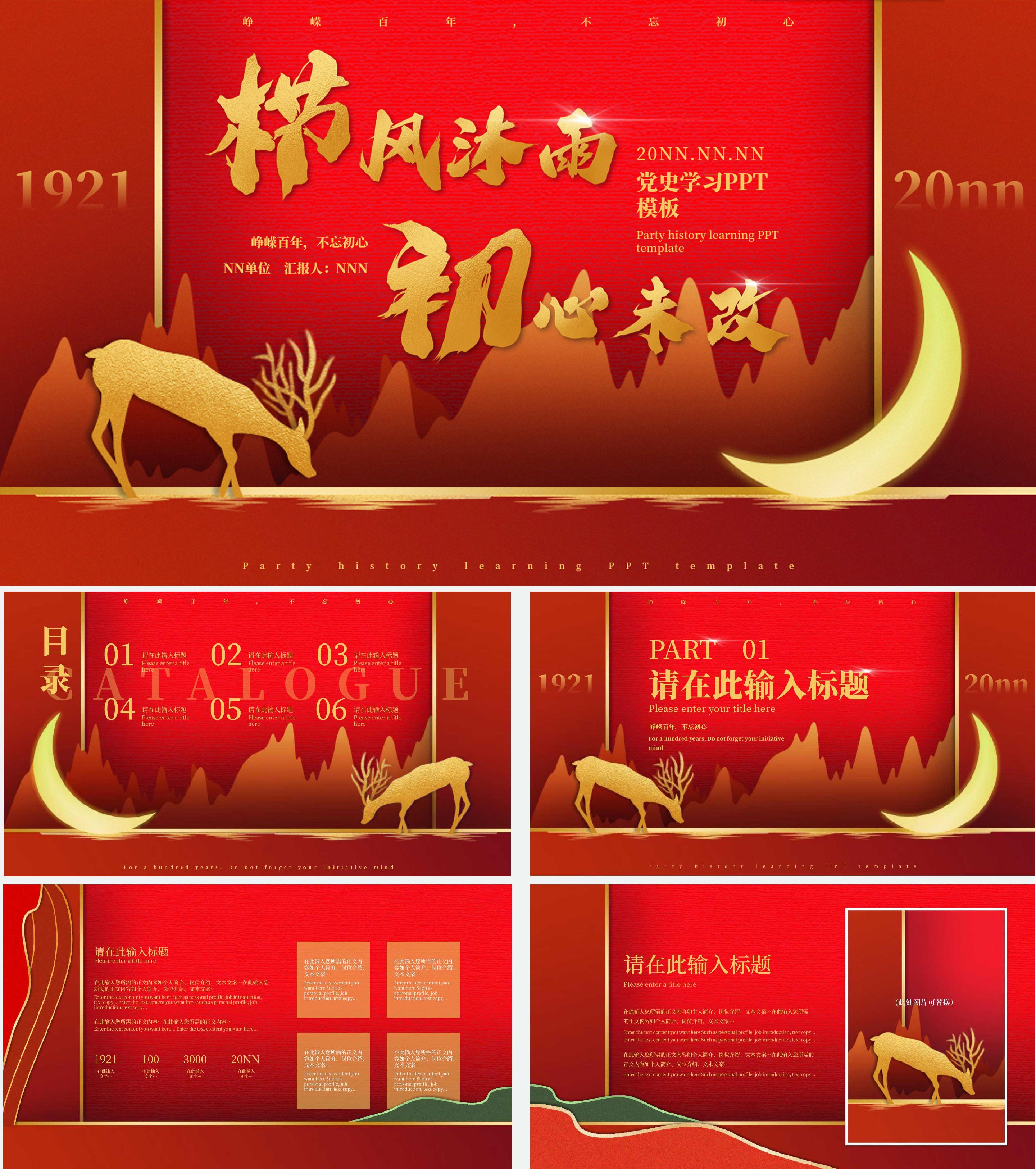 红色党政风栉风沐雨初心未改PPT模板