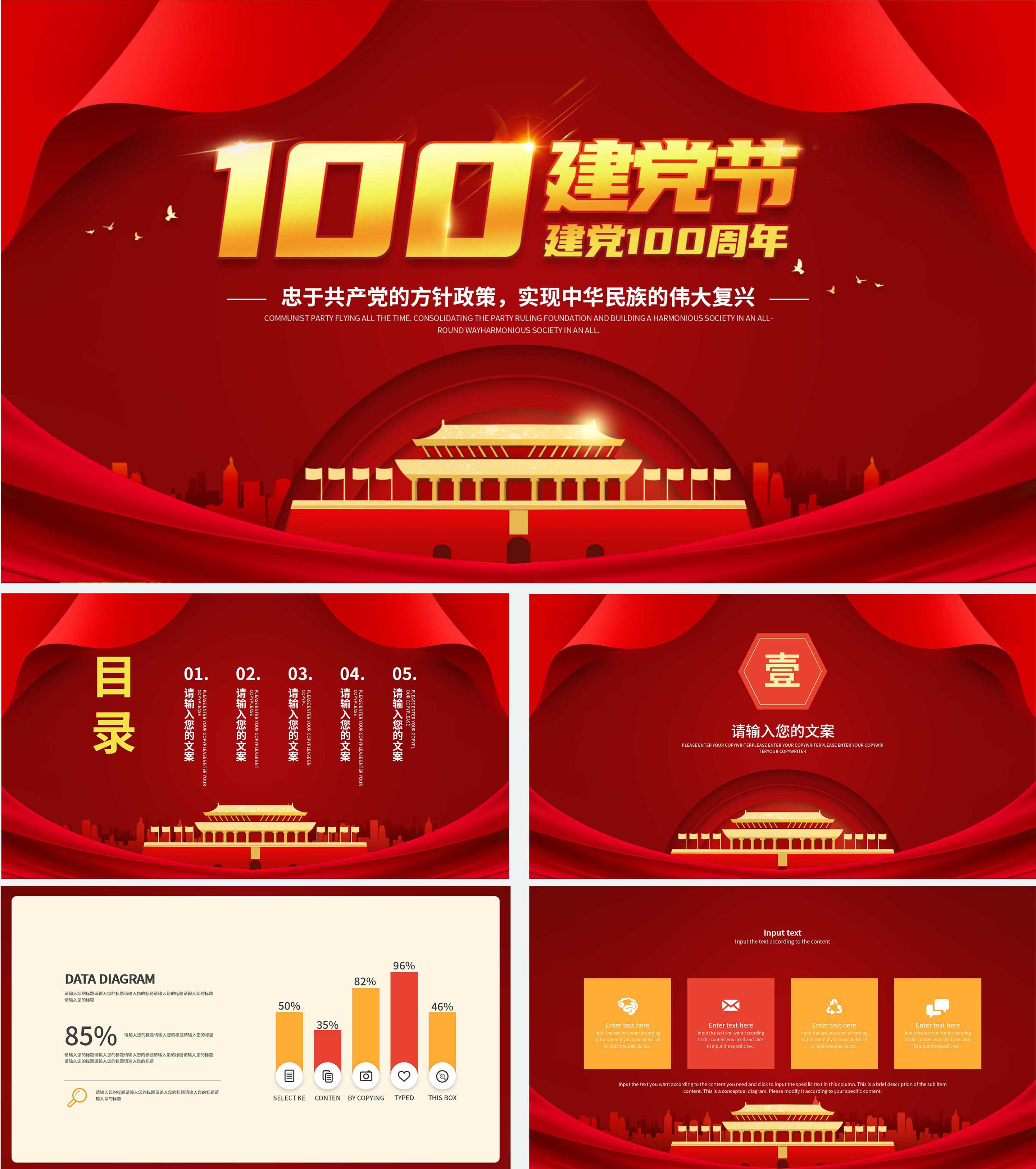 喜庆红色党的生日建党节PPT模板