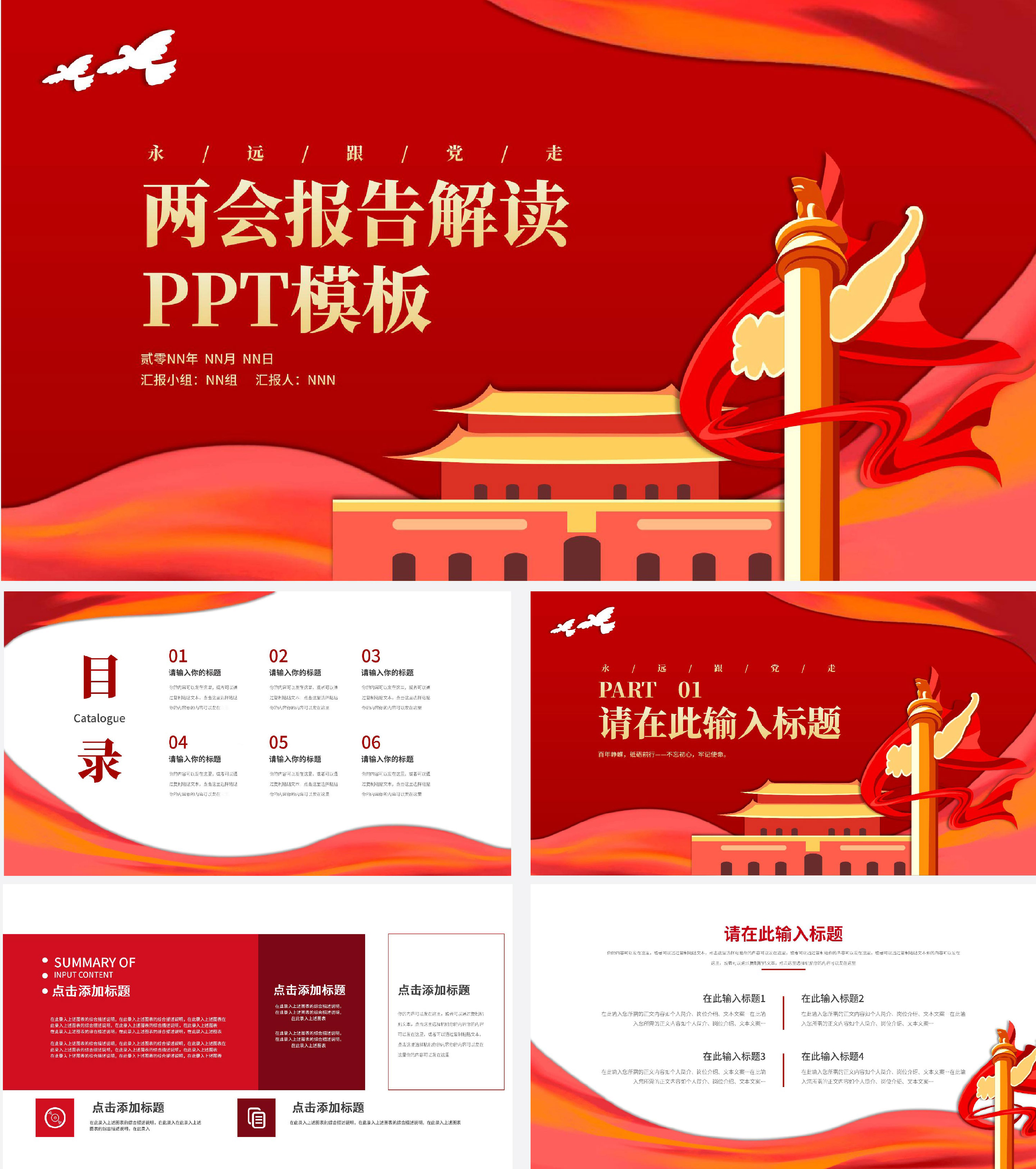 红色党政风两会报告解读PPT模板