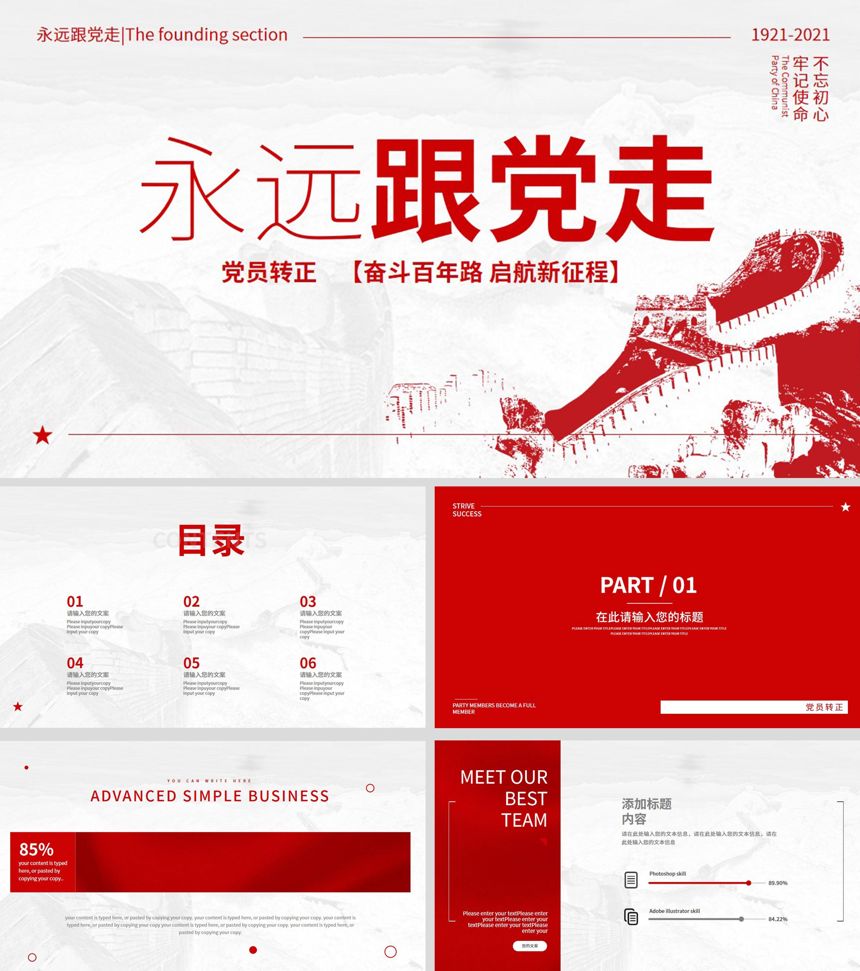 红色中国风永远跟党走党员转正PPT模板