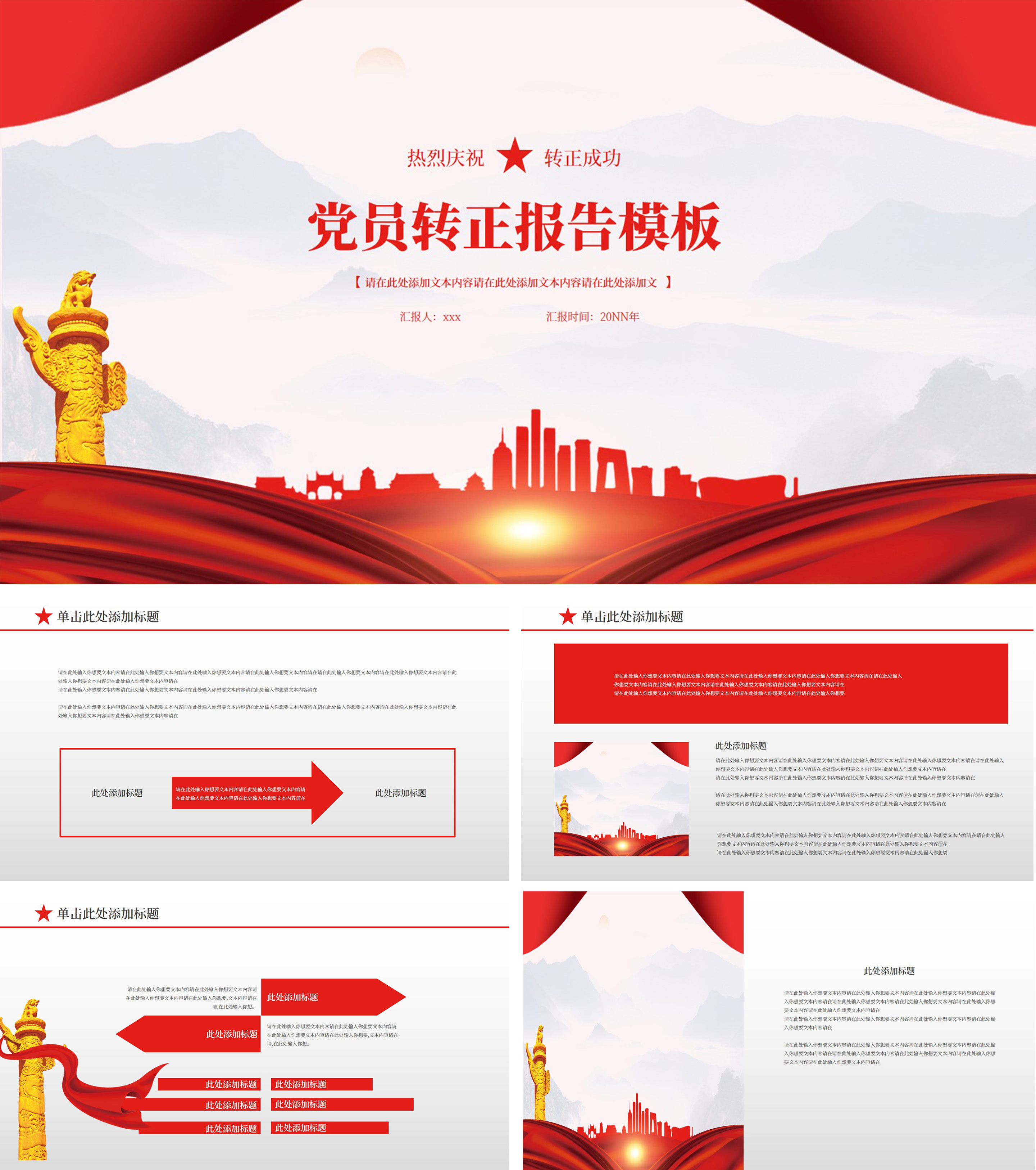 红色简约风党员转正PPT模板