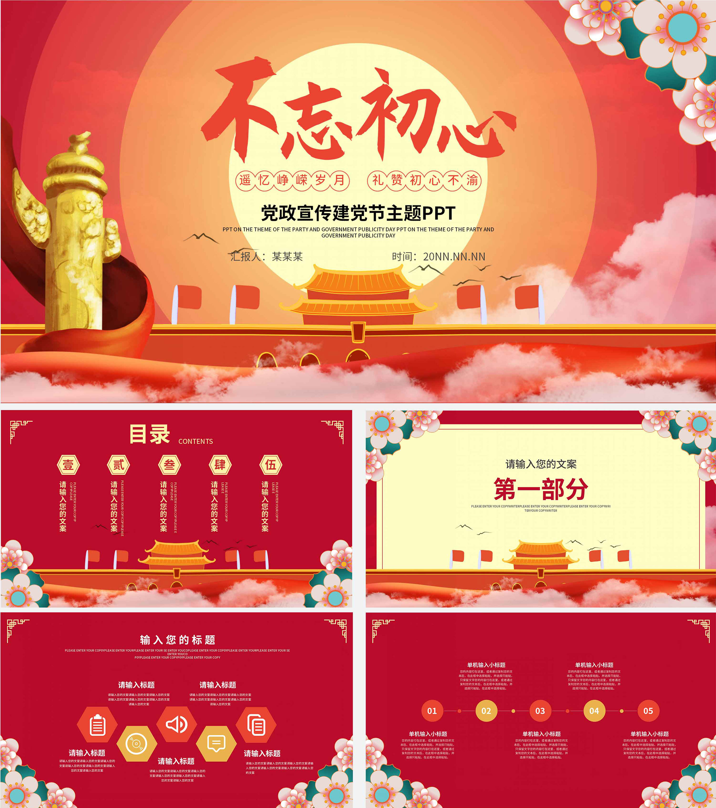 粉色卡通风浪漫情人节情侣娃娃PPT模板