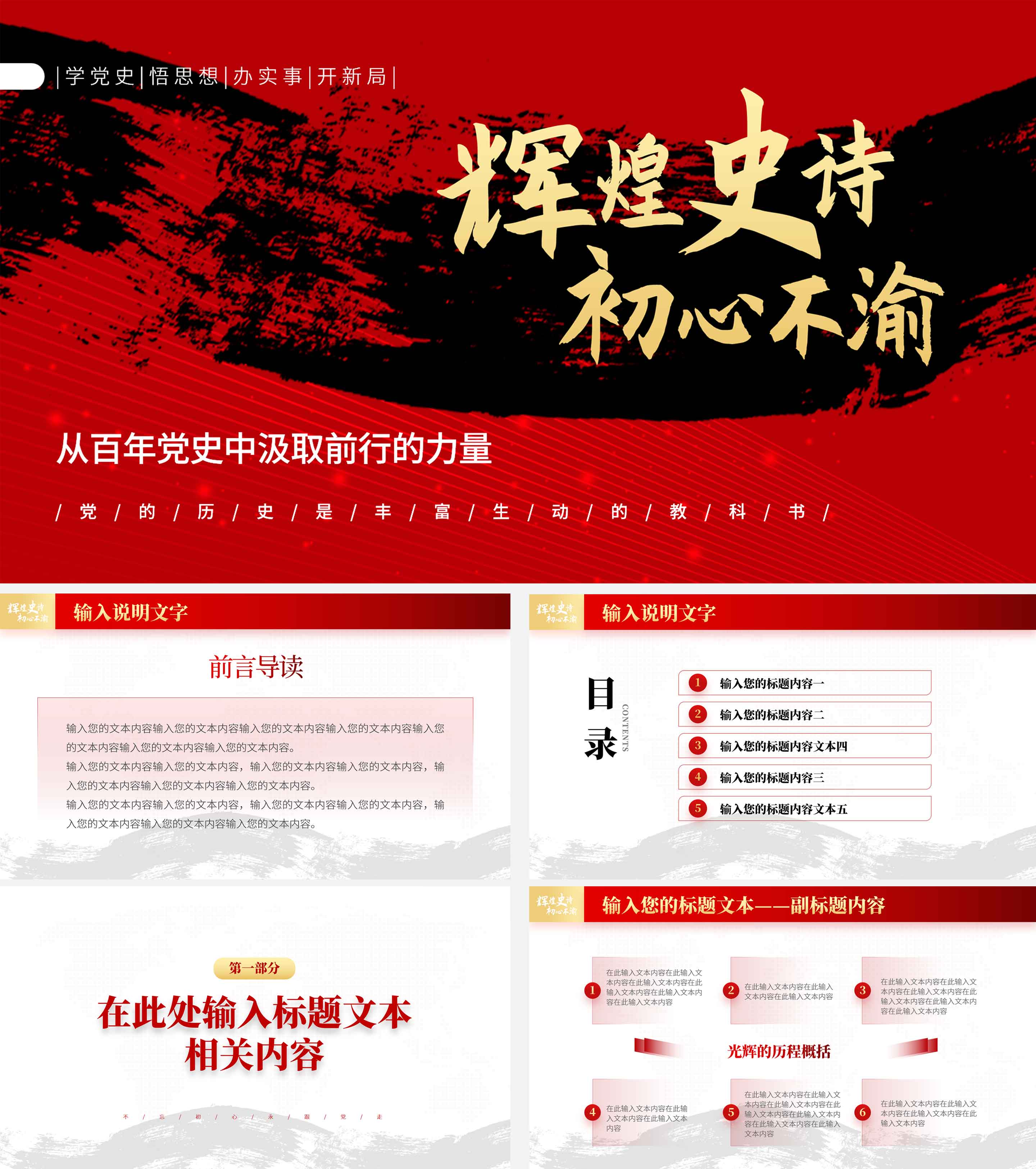 红色党政风辉煌史诗初心不渝主题PPT模板