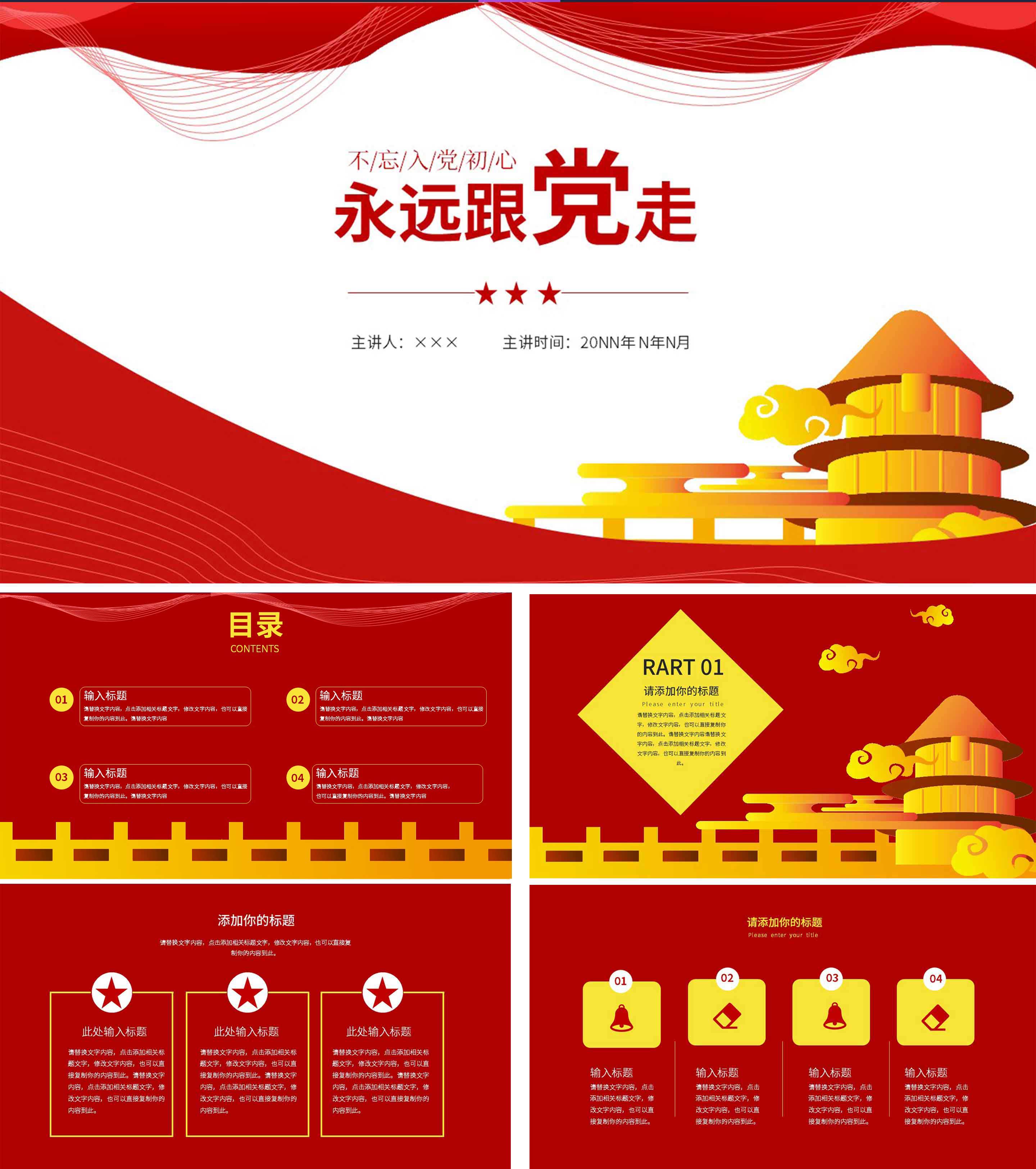 红色党政风永远跟党走PPT模板