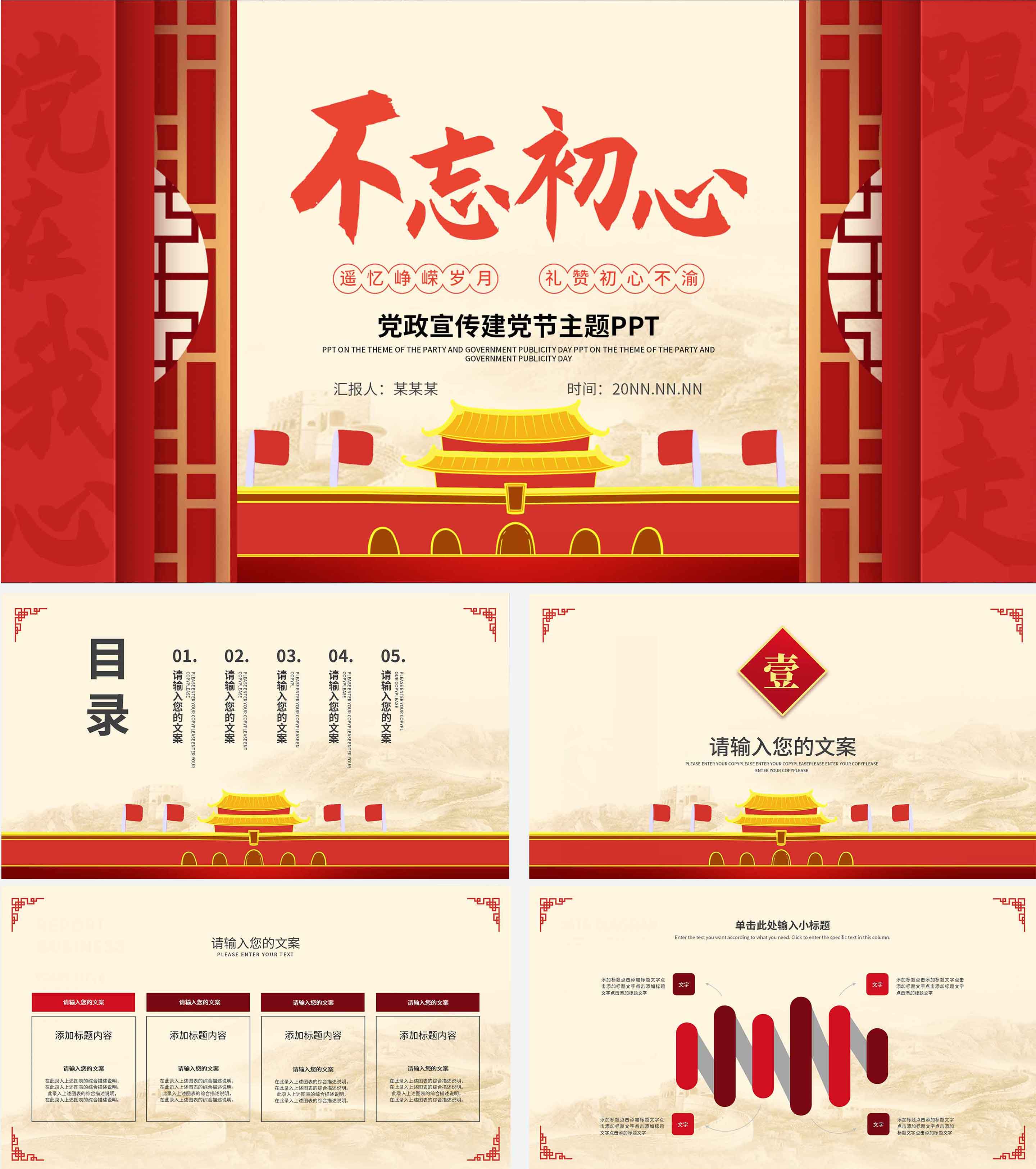 建党百年不忘初心主题宣传PPT模板