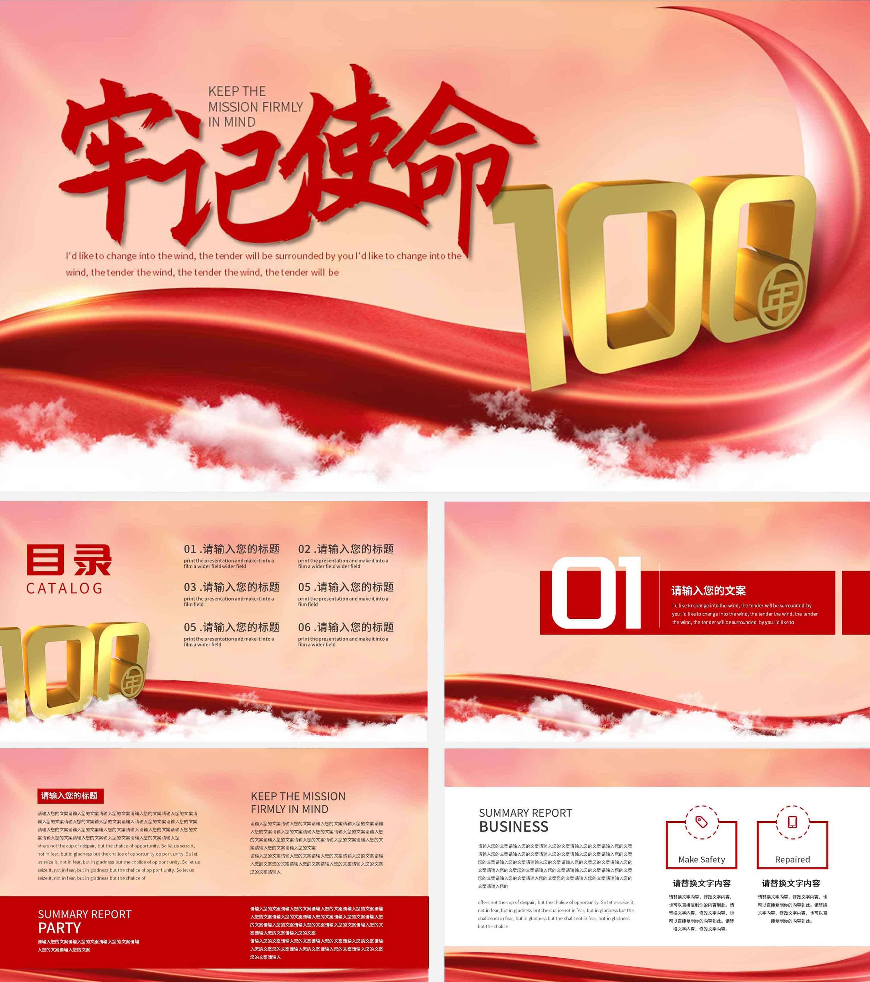 蓝色党政风爱国年终党政工作总结汇报PPT模板