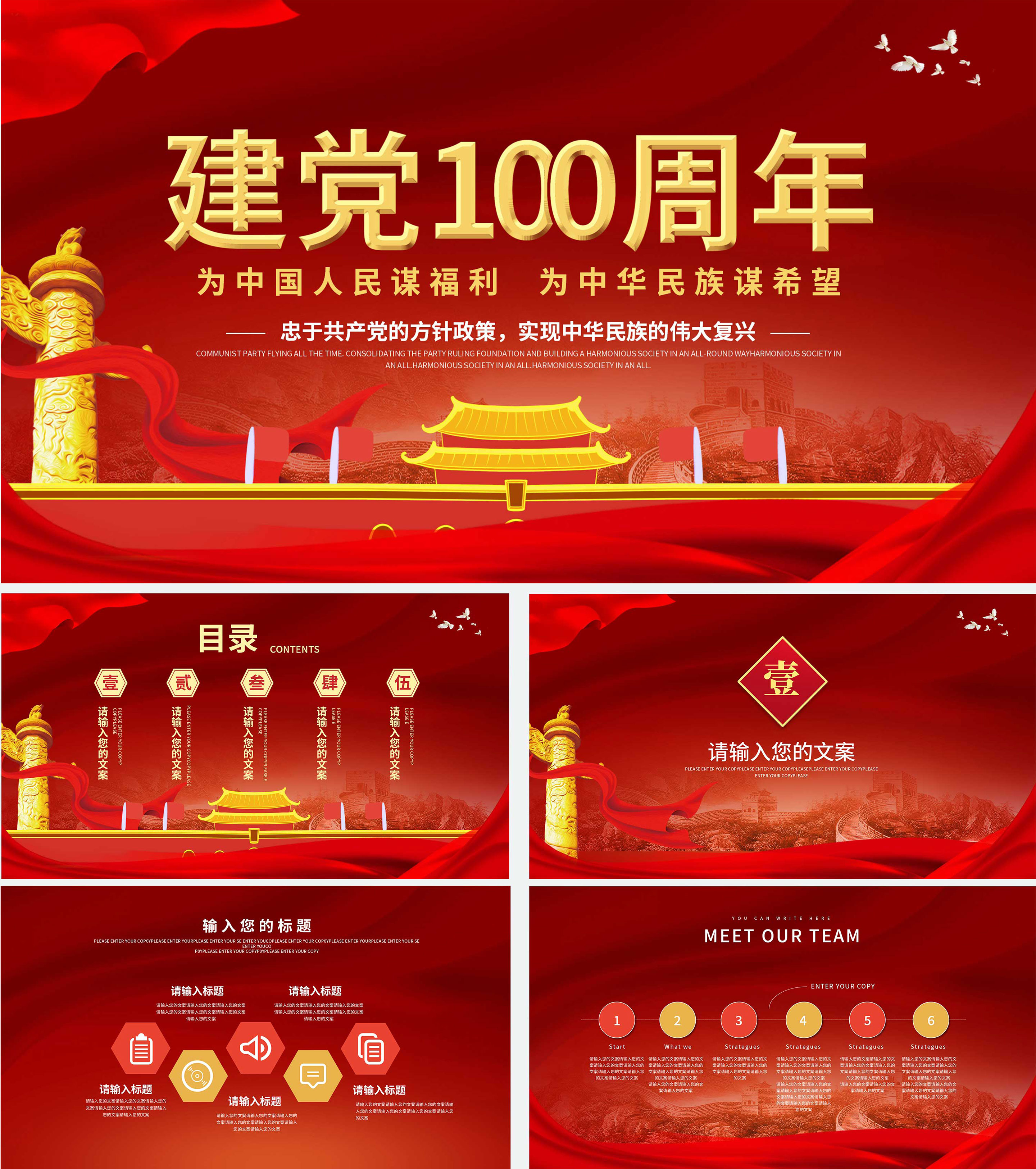 红色喜庆建党100周年PPT模板