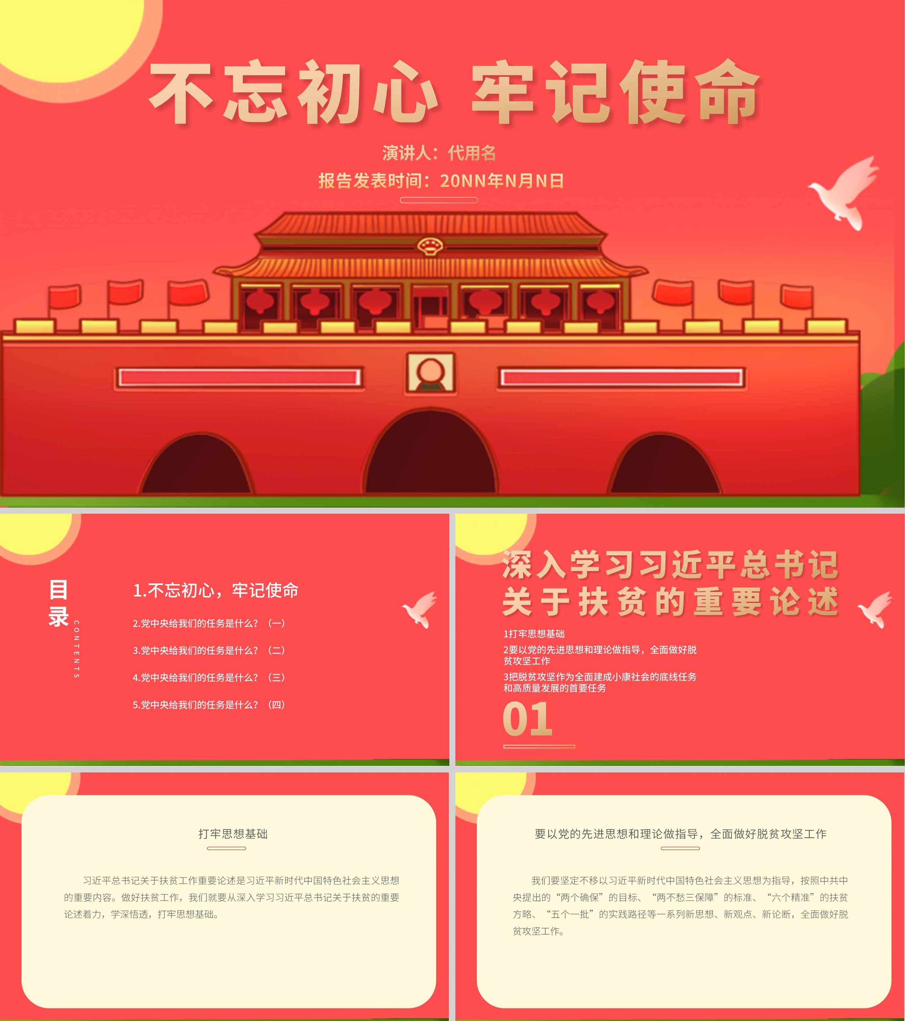 红色党政风牢记使命PPT模板