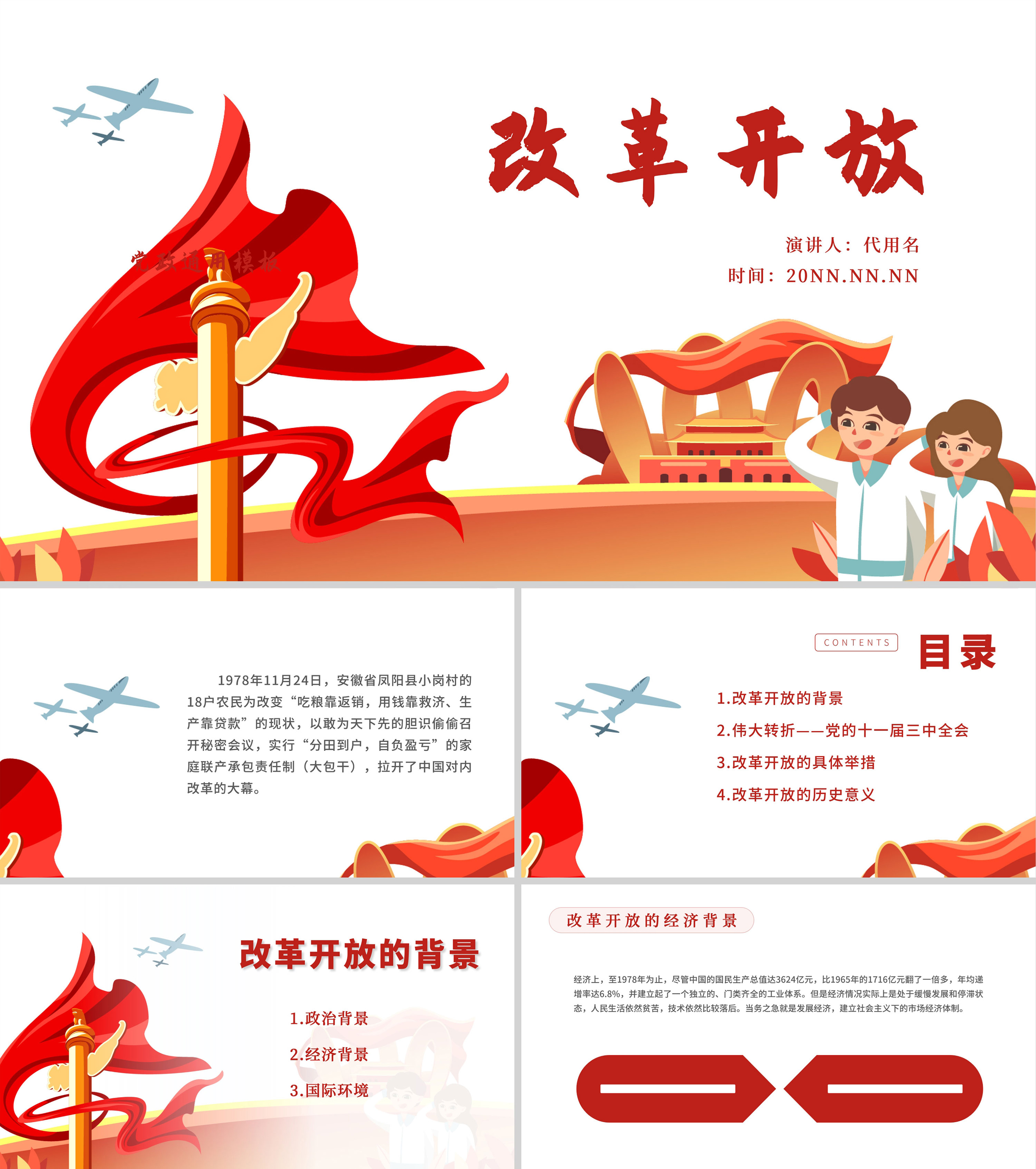 红色党政风改革开放PPT模板