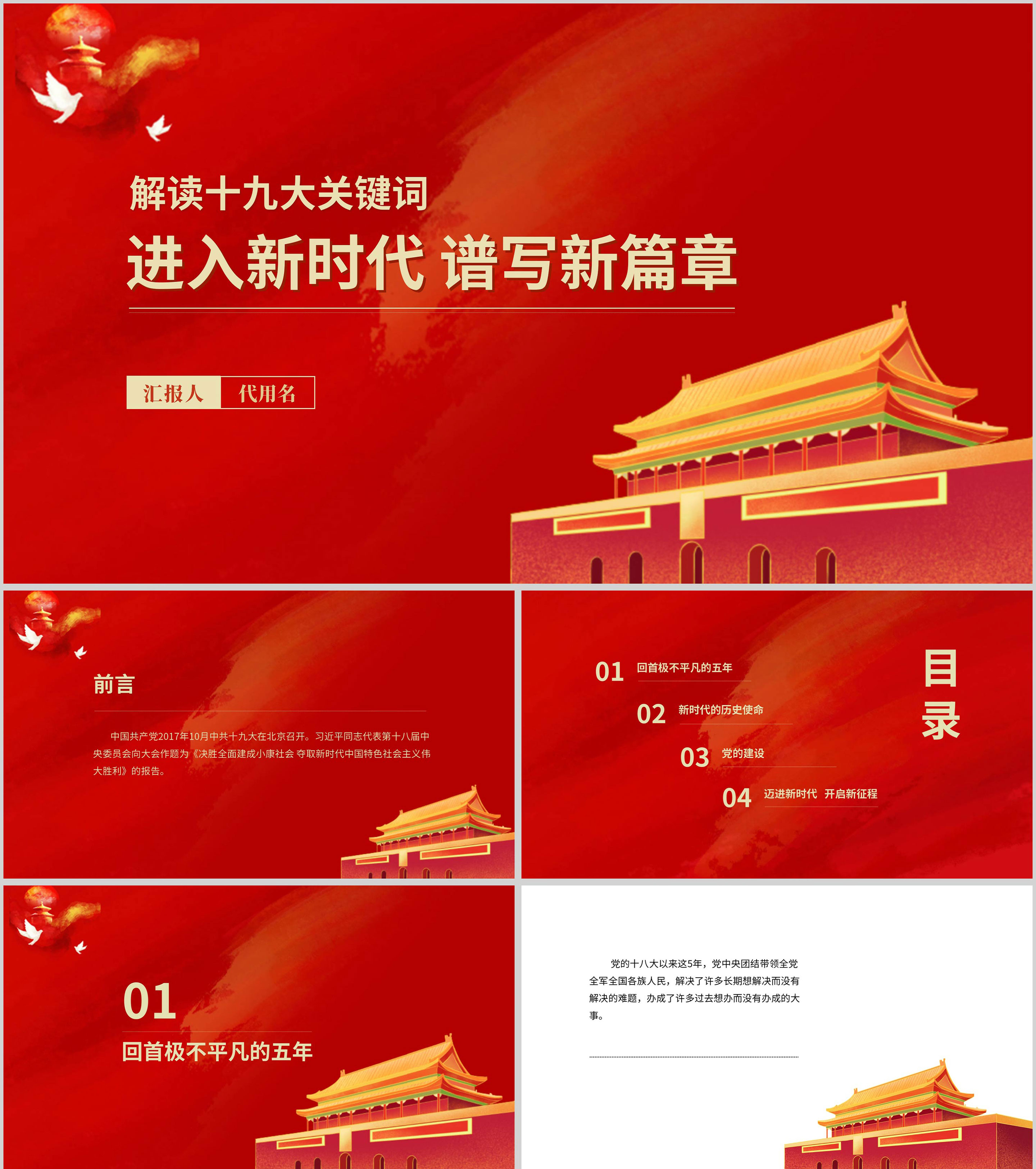红色中国风公司开门红新春都市画卷节日PPT模板