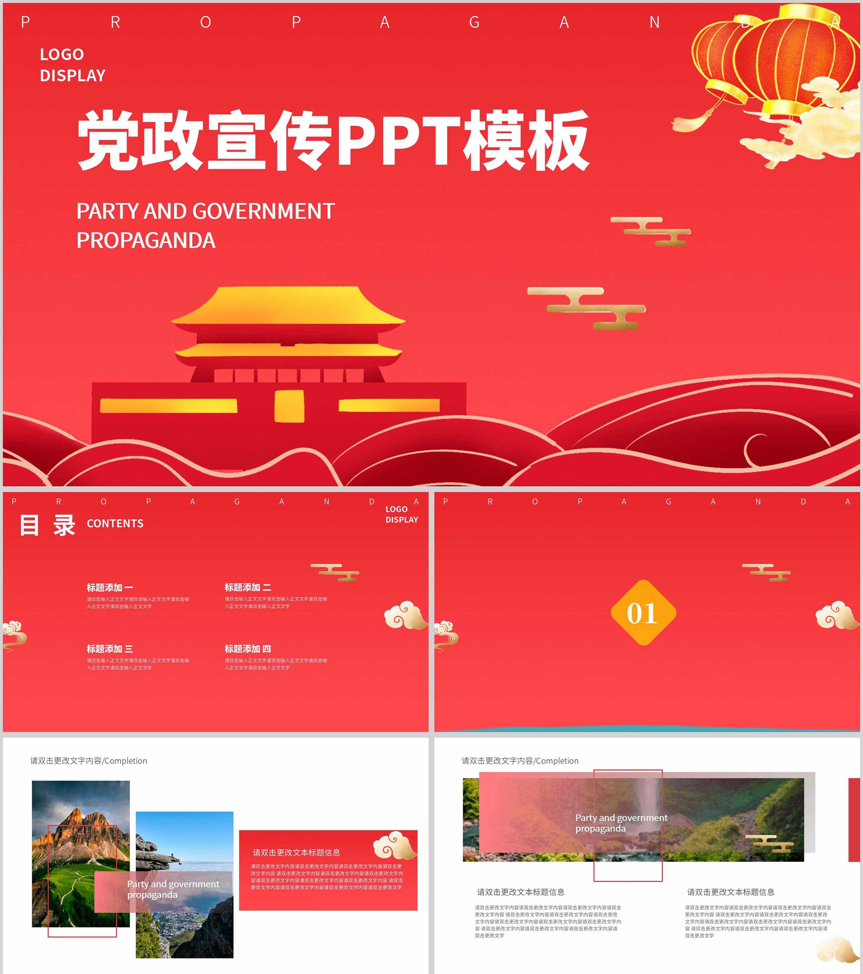 红色插画风节日喜庆党政军警宣传交运PPT模板