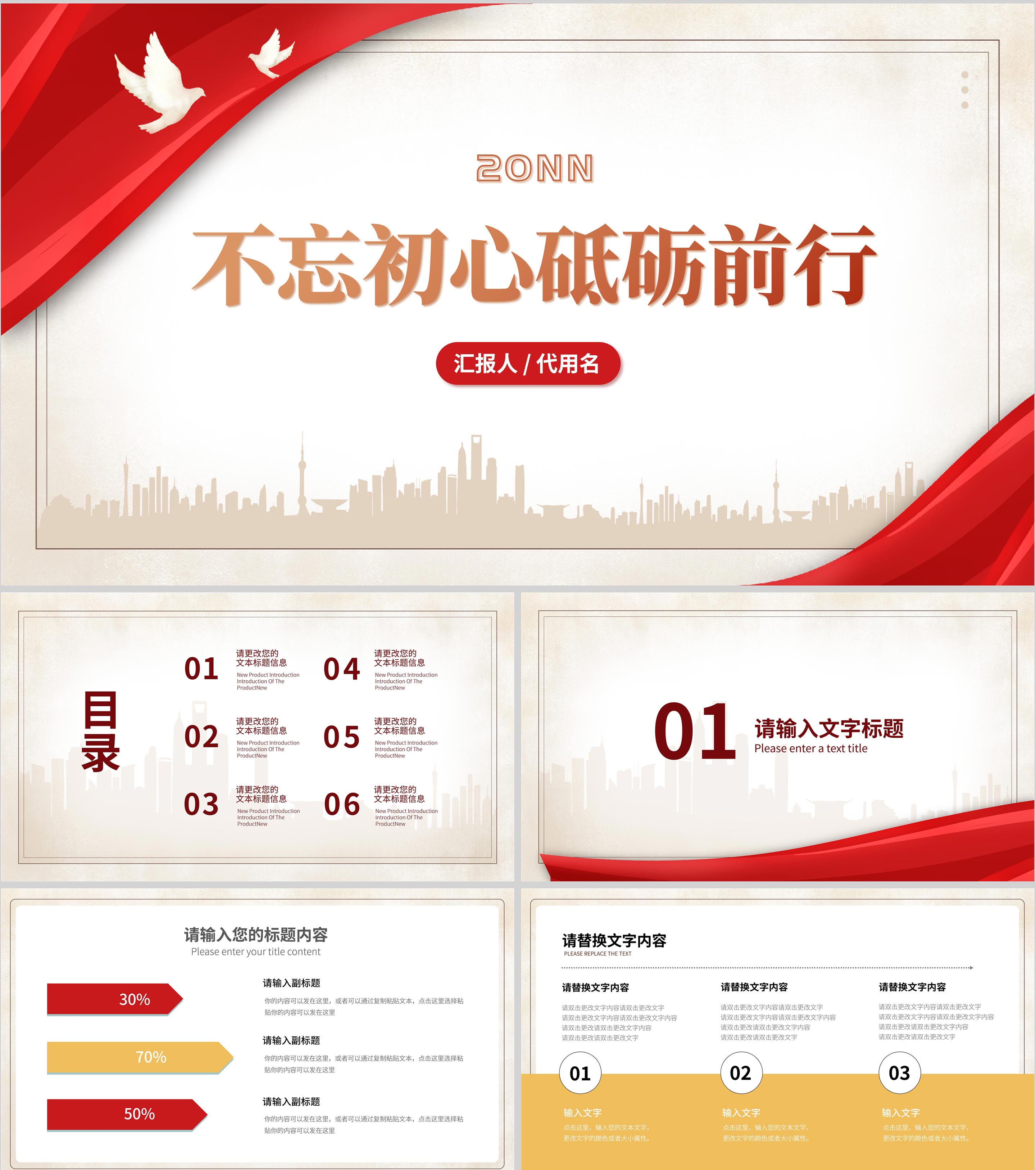 黄色简约风党政报告不忘初心党员PPT模板