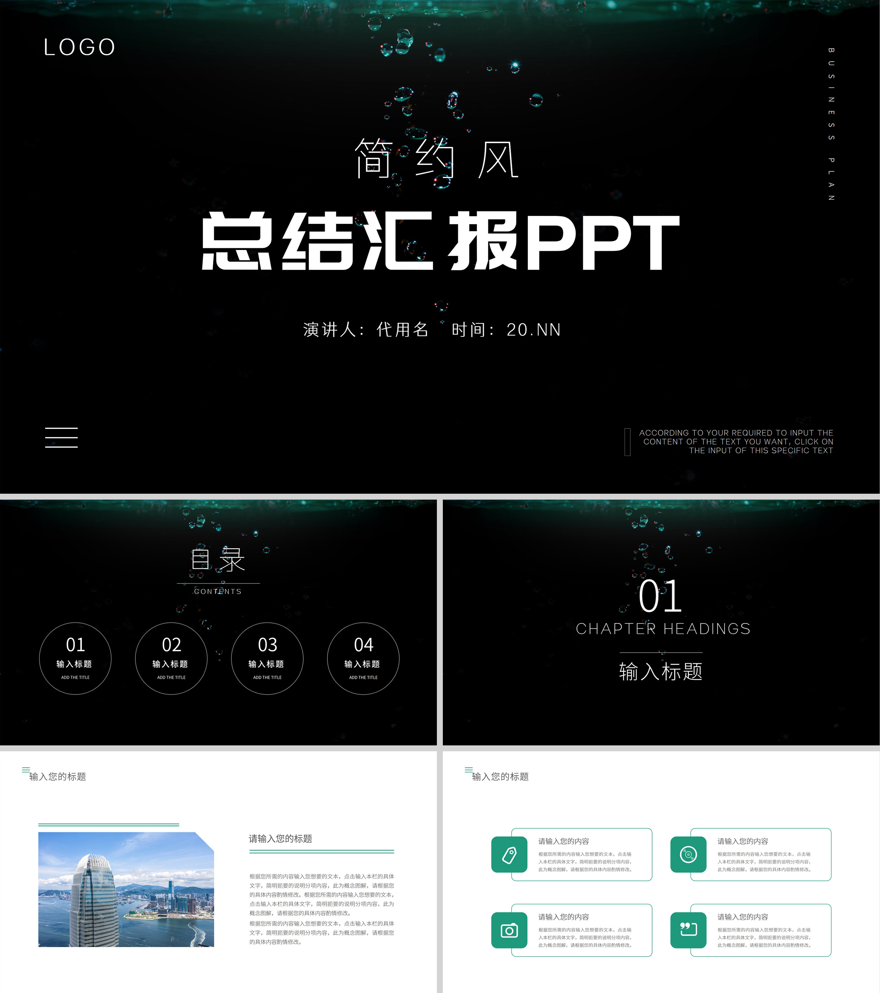 商务风深蓝文件夹公司年终述职报告PPT模板