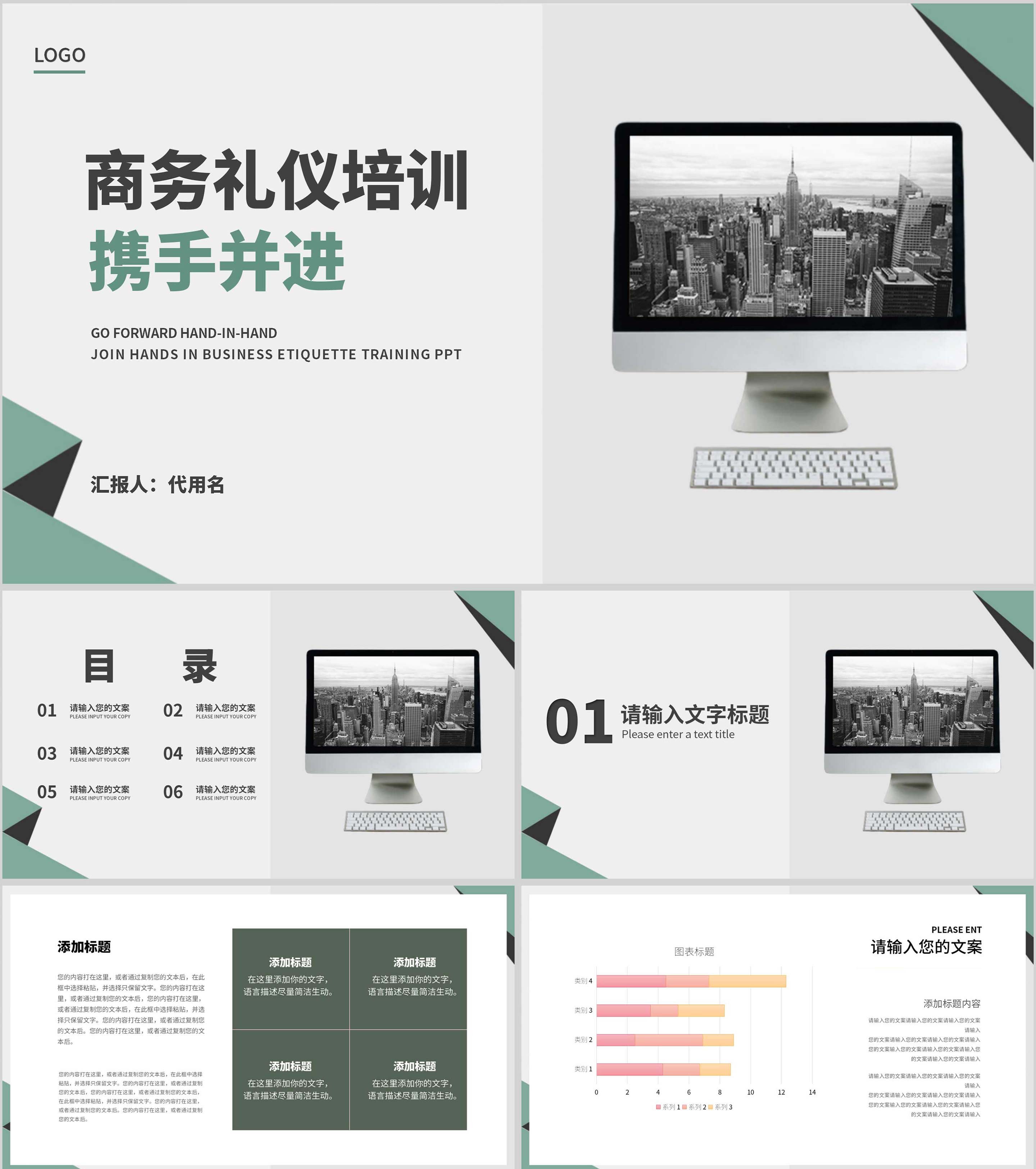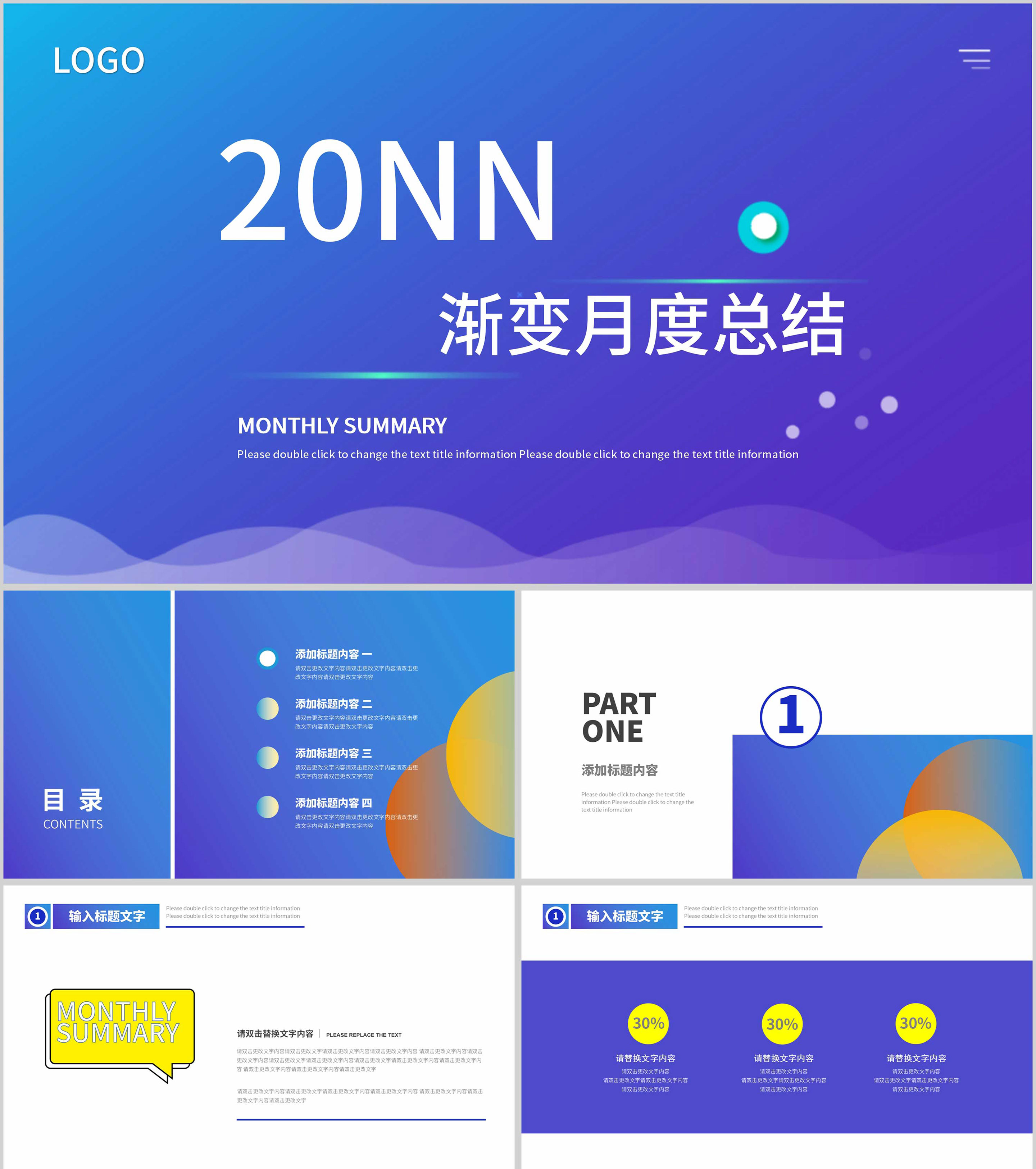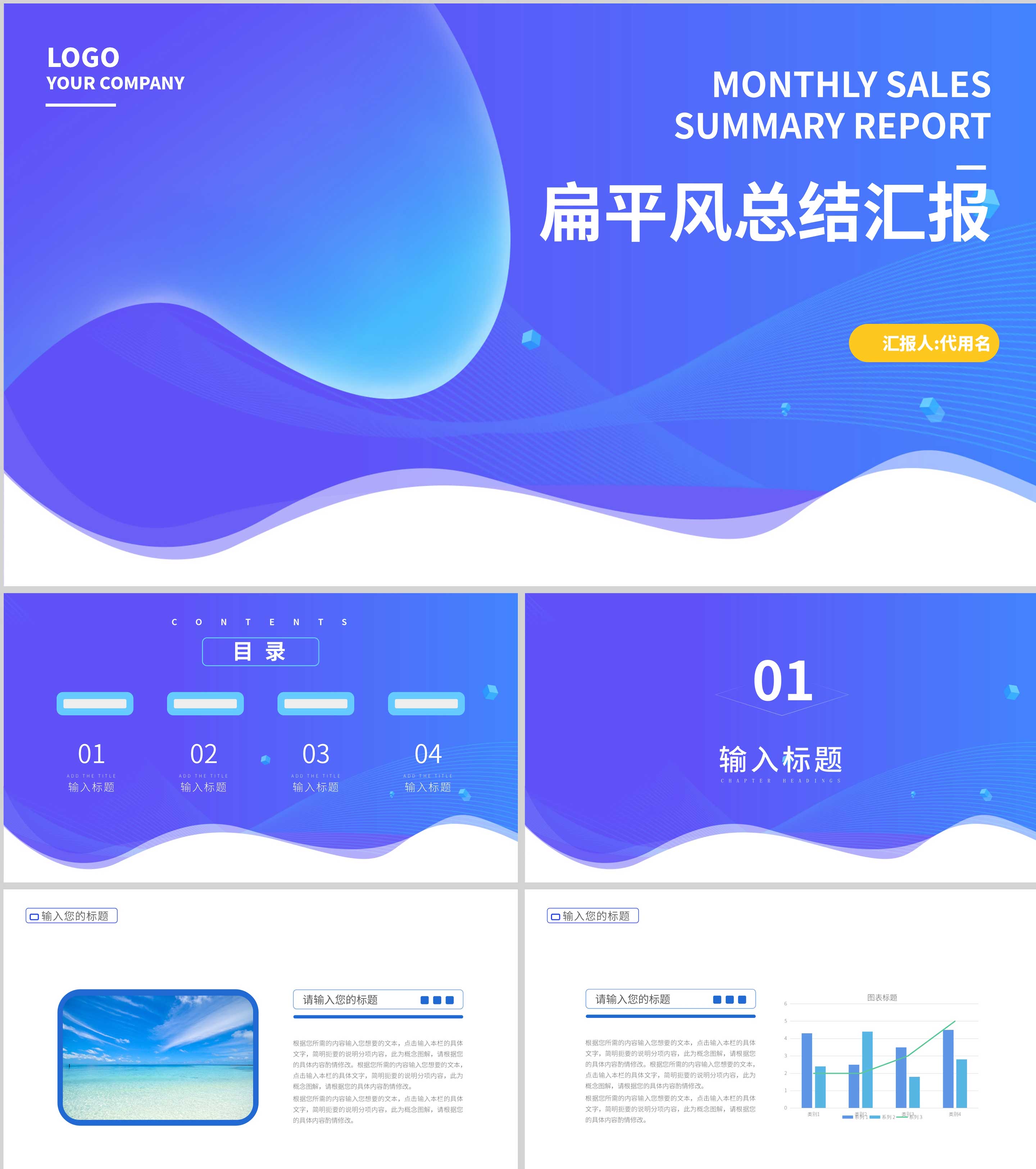 蓝色扁平风职场数据汇总工作总结汇报PPT模板