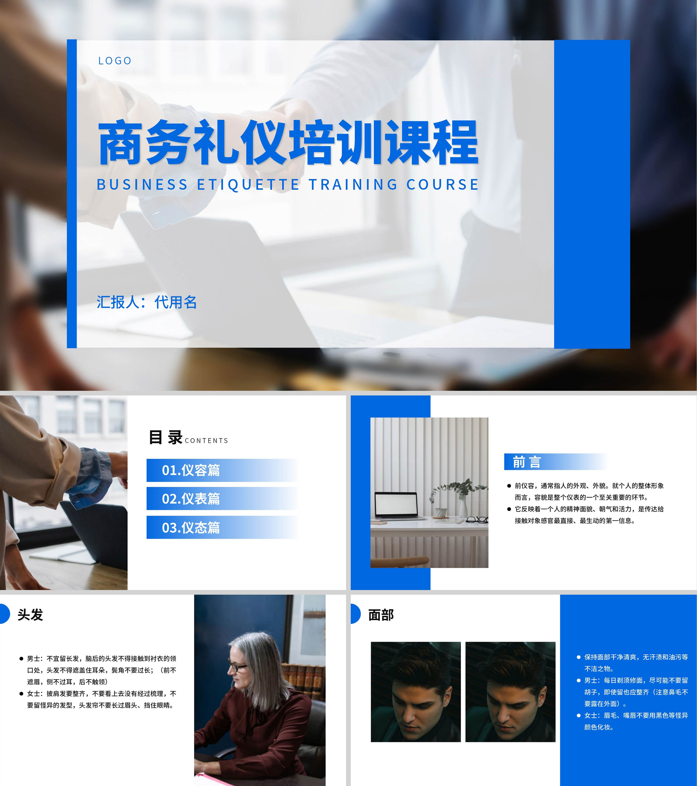 蓝色小清新实习转正职场竞聘述职报告PPT模板