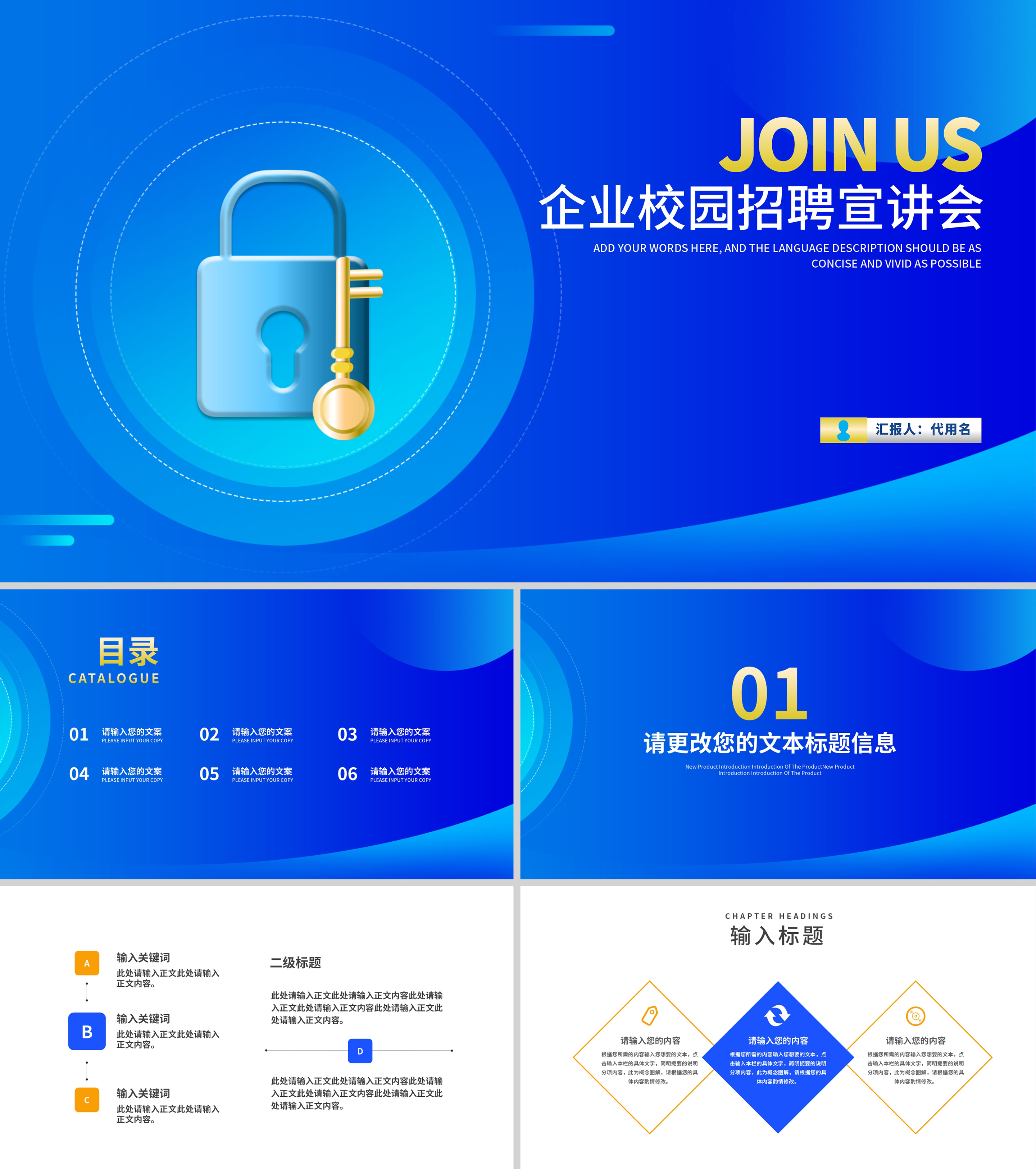 蓝色锁头企业校园招聘宣讲会汇报PPT模板