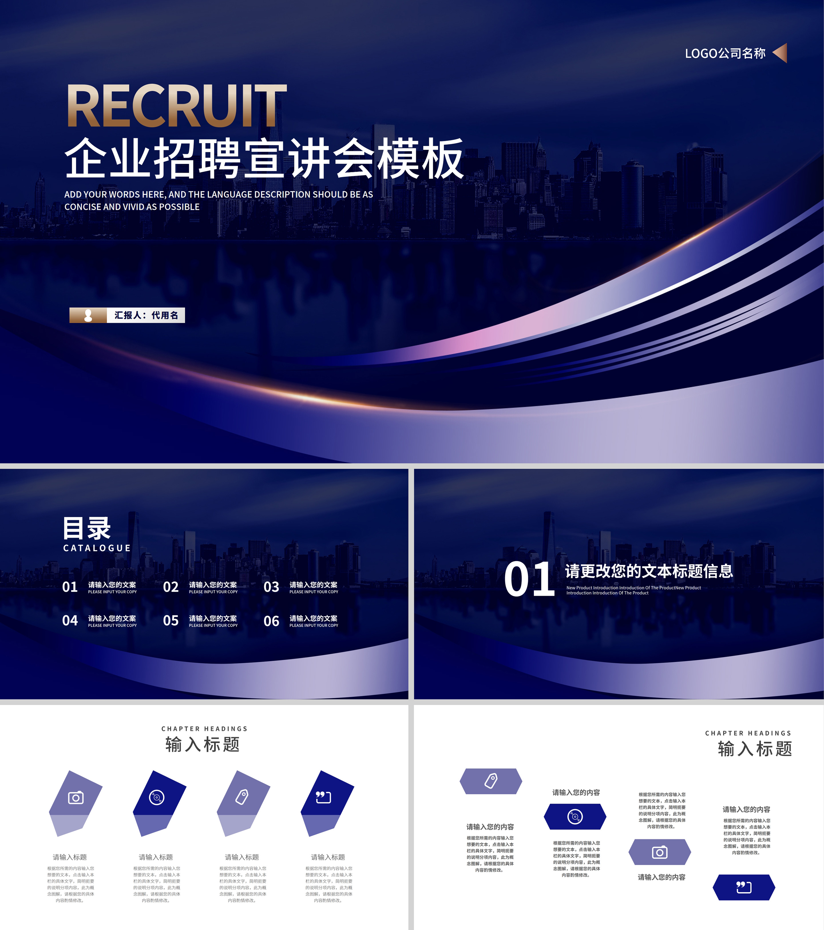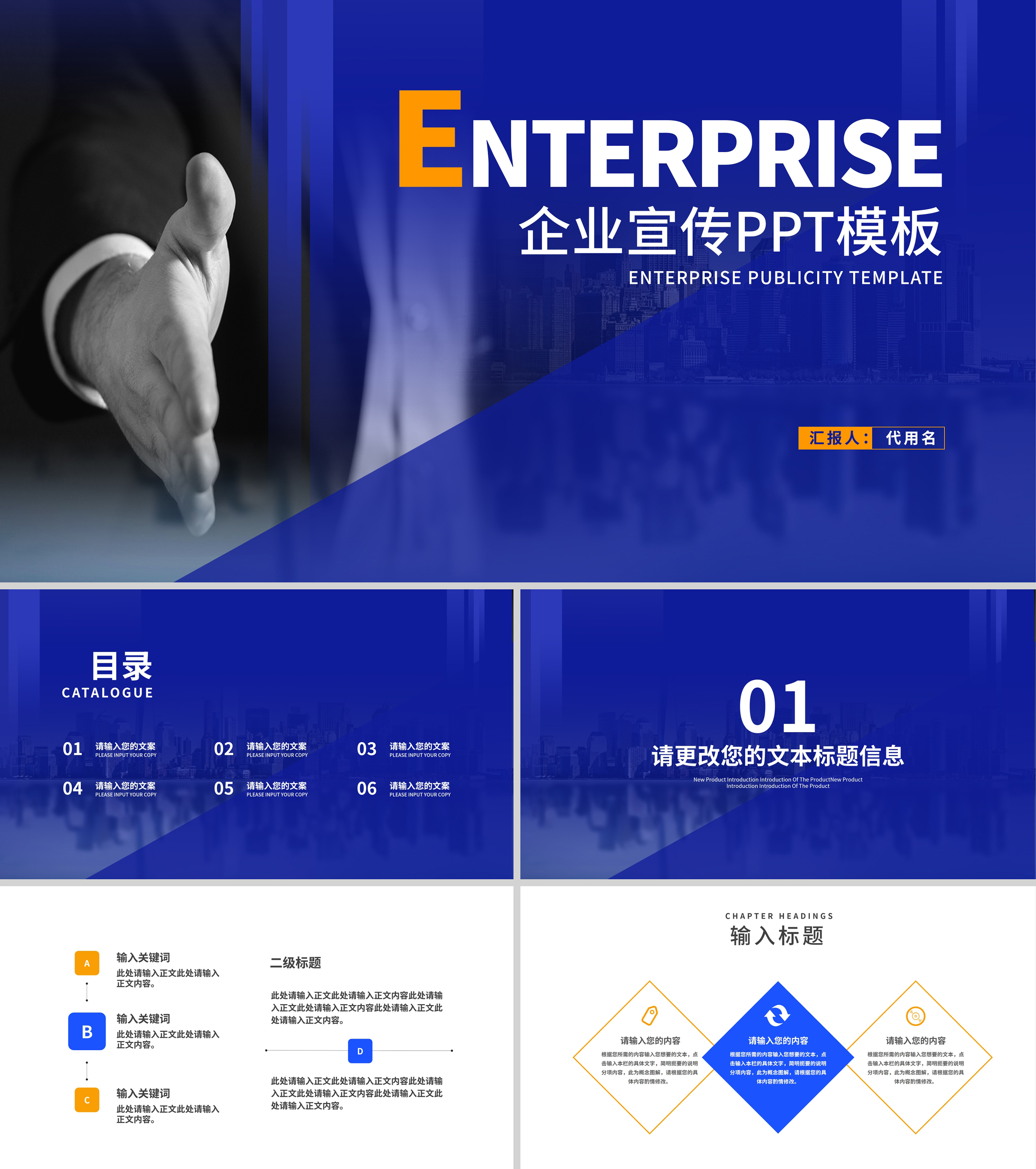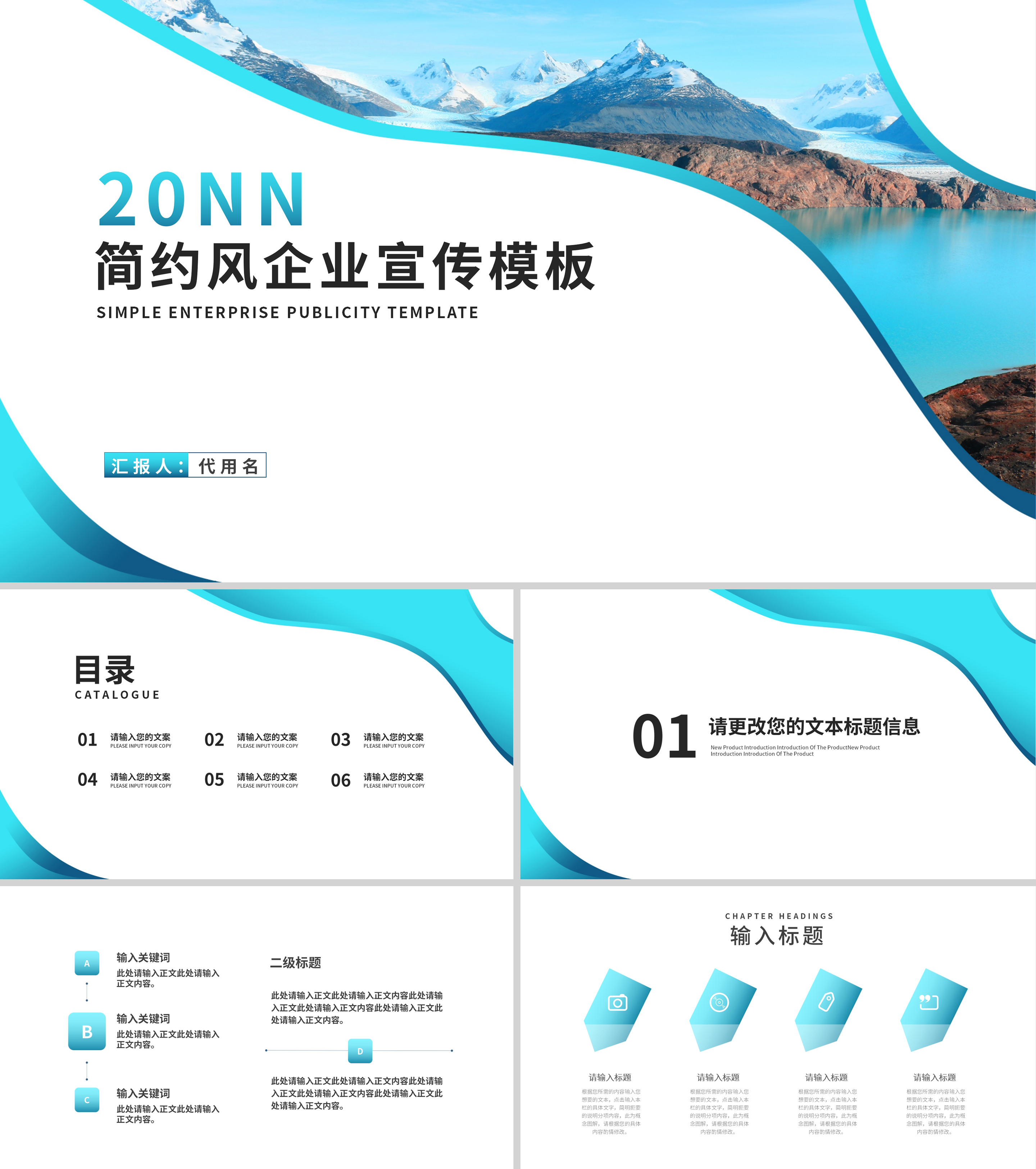 蓝色画册风励志扬帆职场通用总结汇报PPT模板