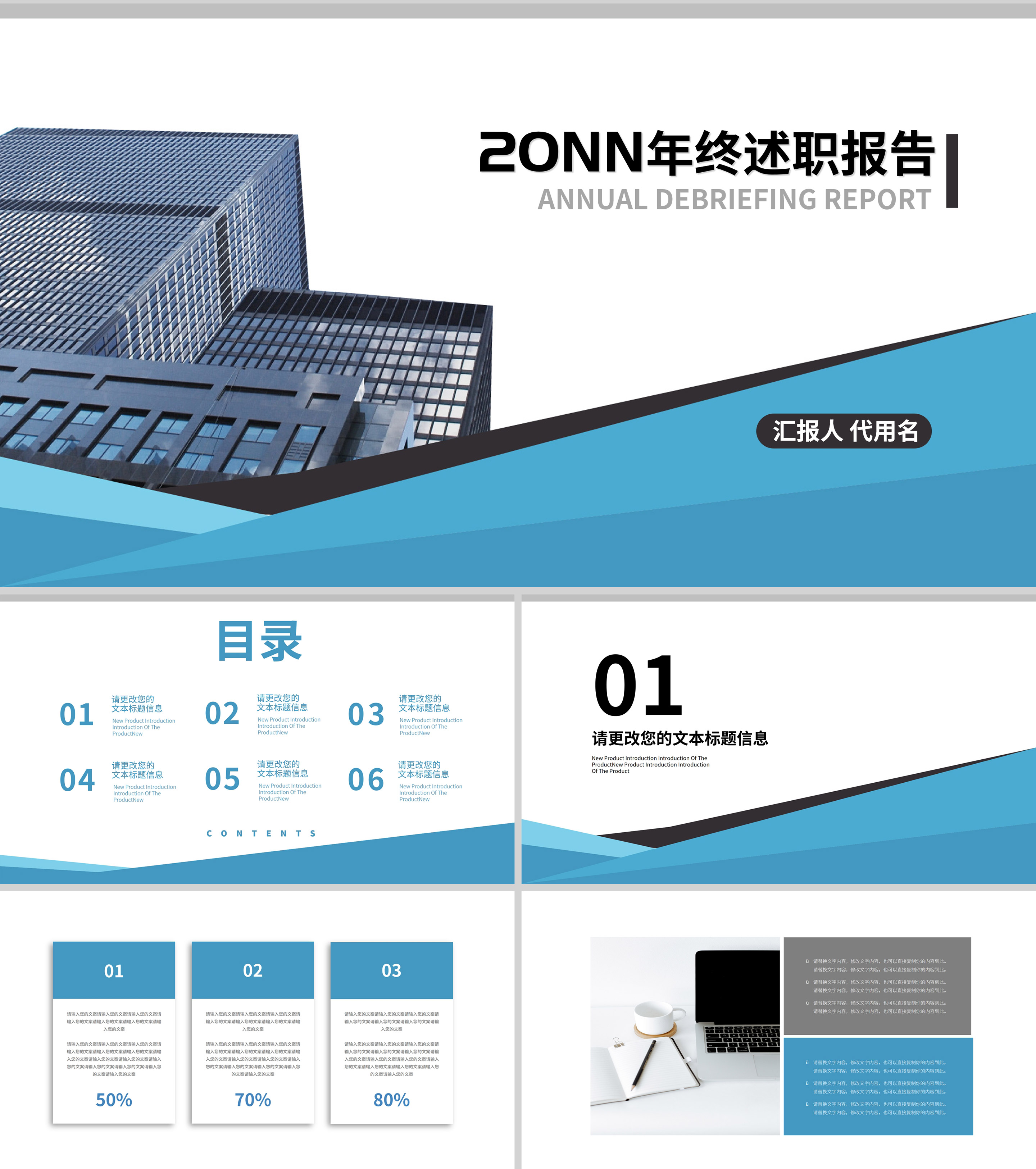 蓝色商务风都市大楼年终工作述职汇报通用PPT模板