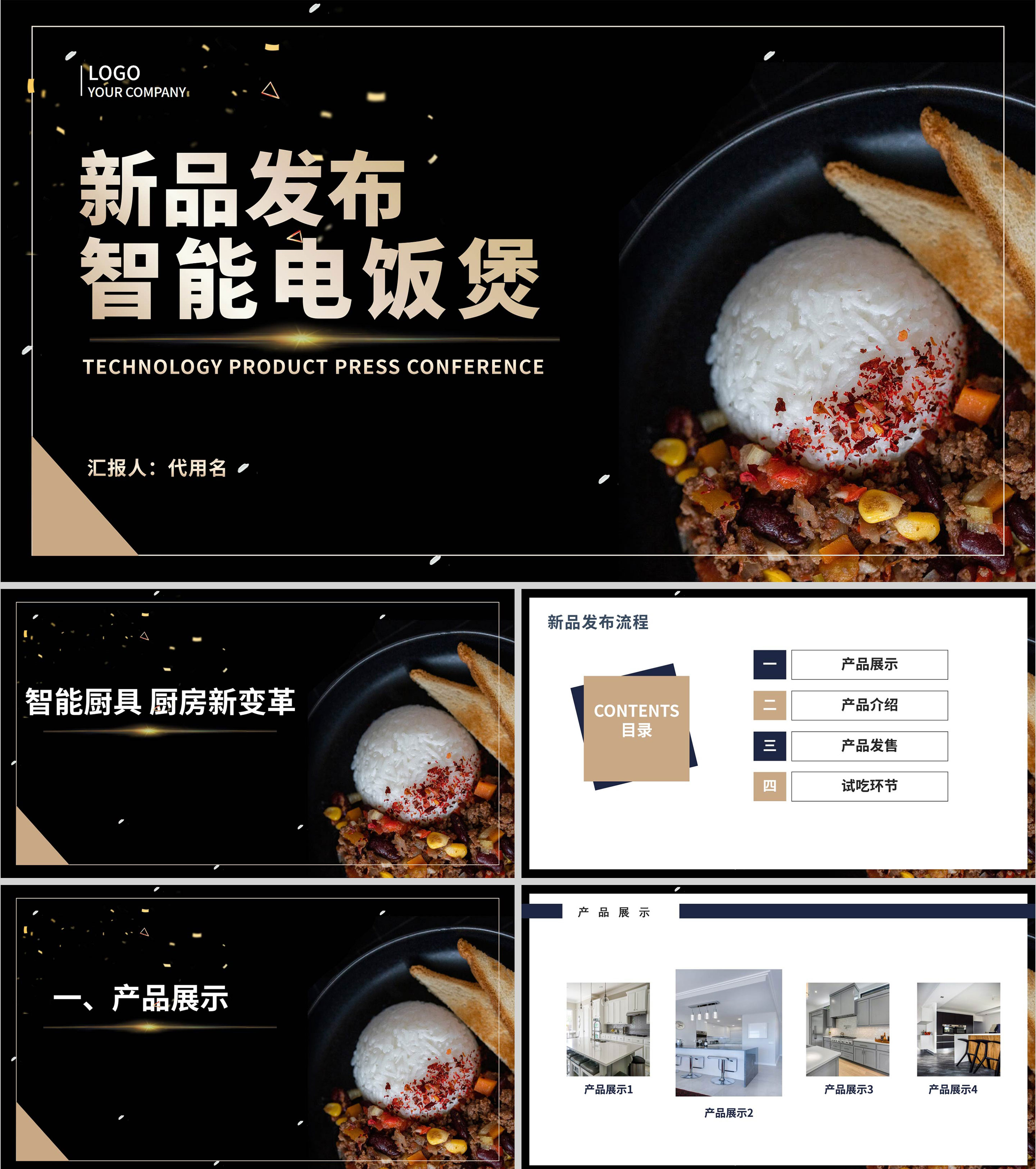 黑色插画风家居产品智能电饭煲产品发布PPT模板