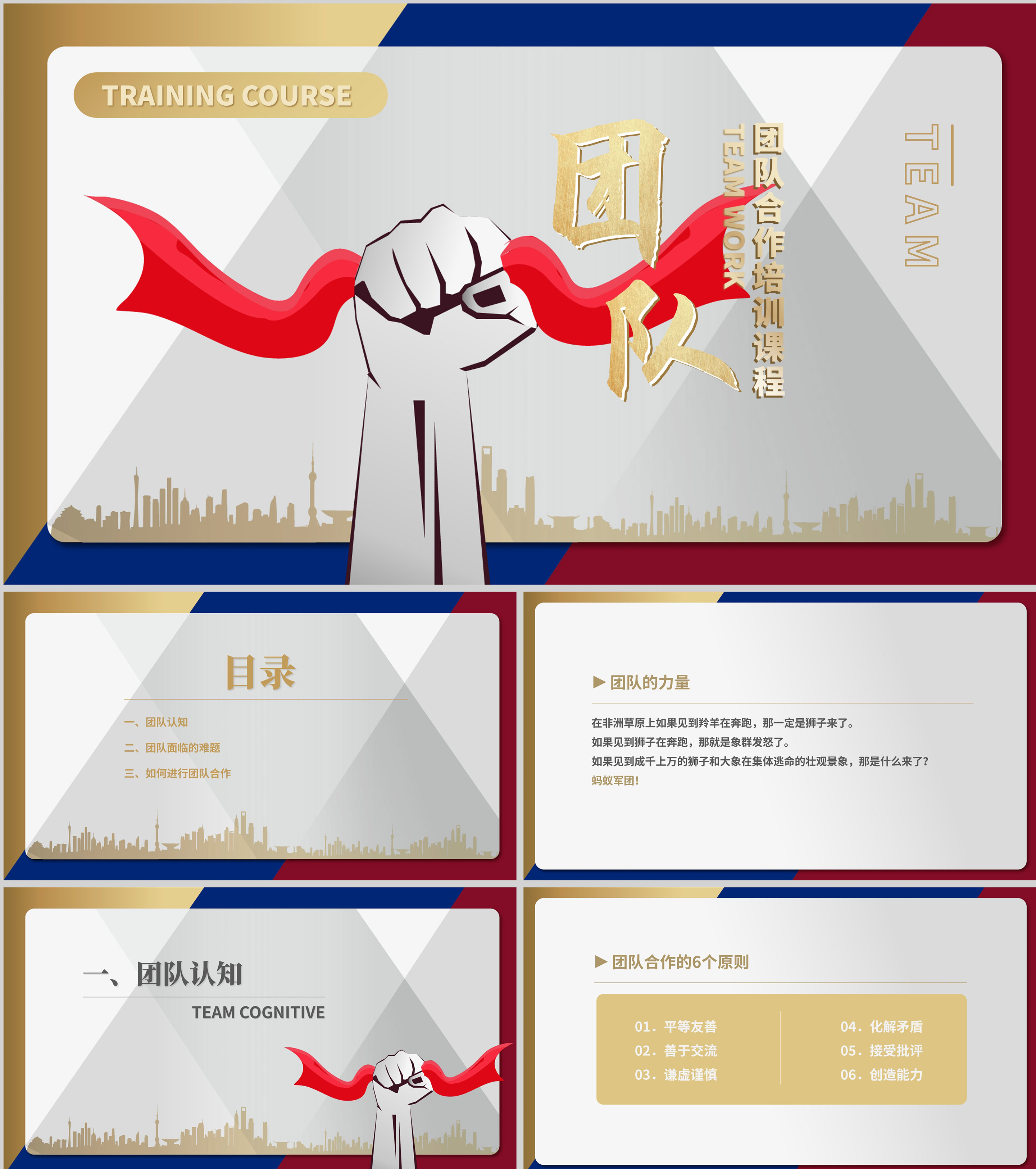 白色简约风团队合作培训PPT模板