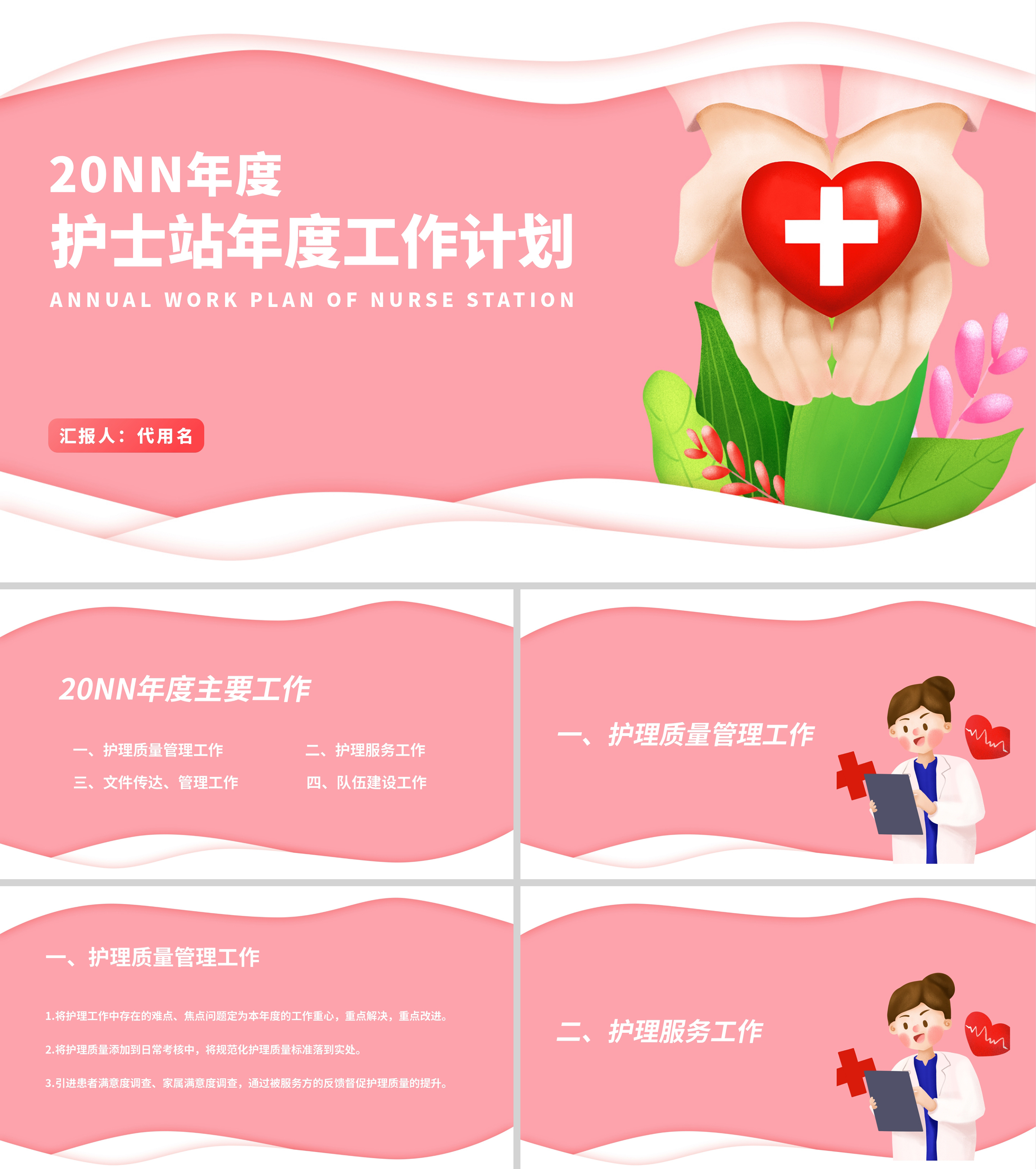 粉色插画风医疗护士工作计划PPT模板