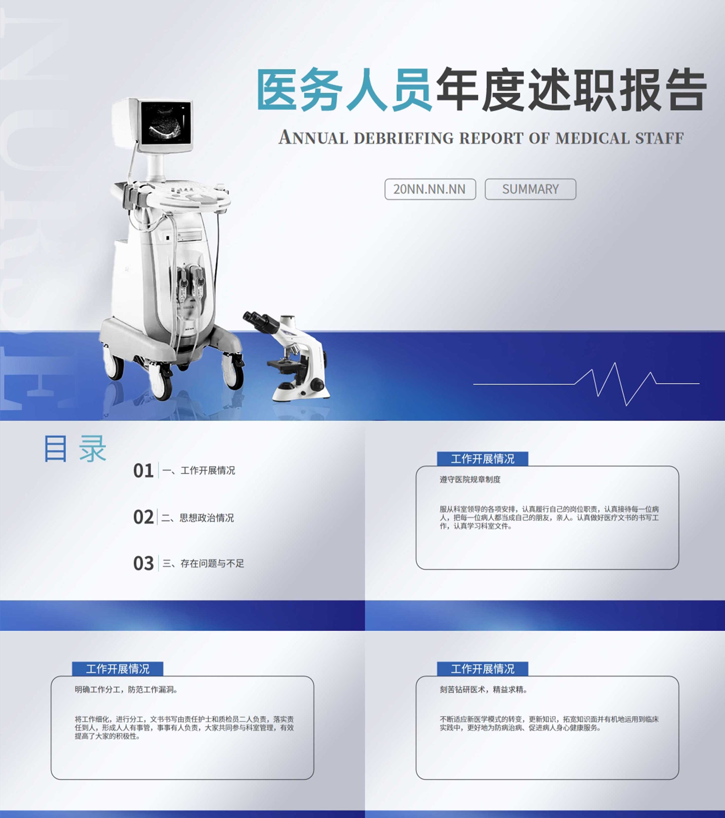 白色简约风医务人员年度职场述职总结报告PPT模板