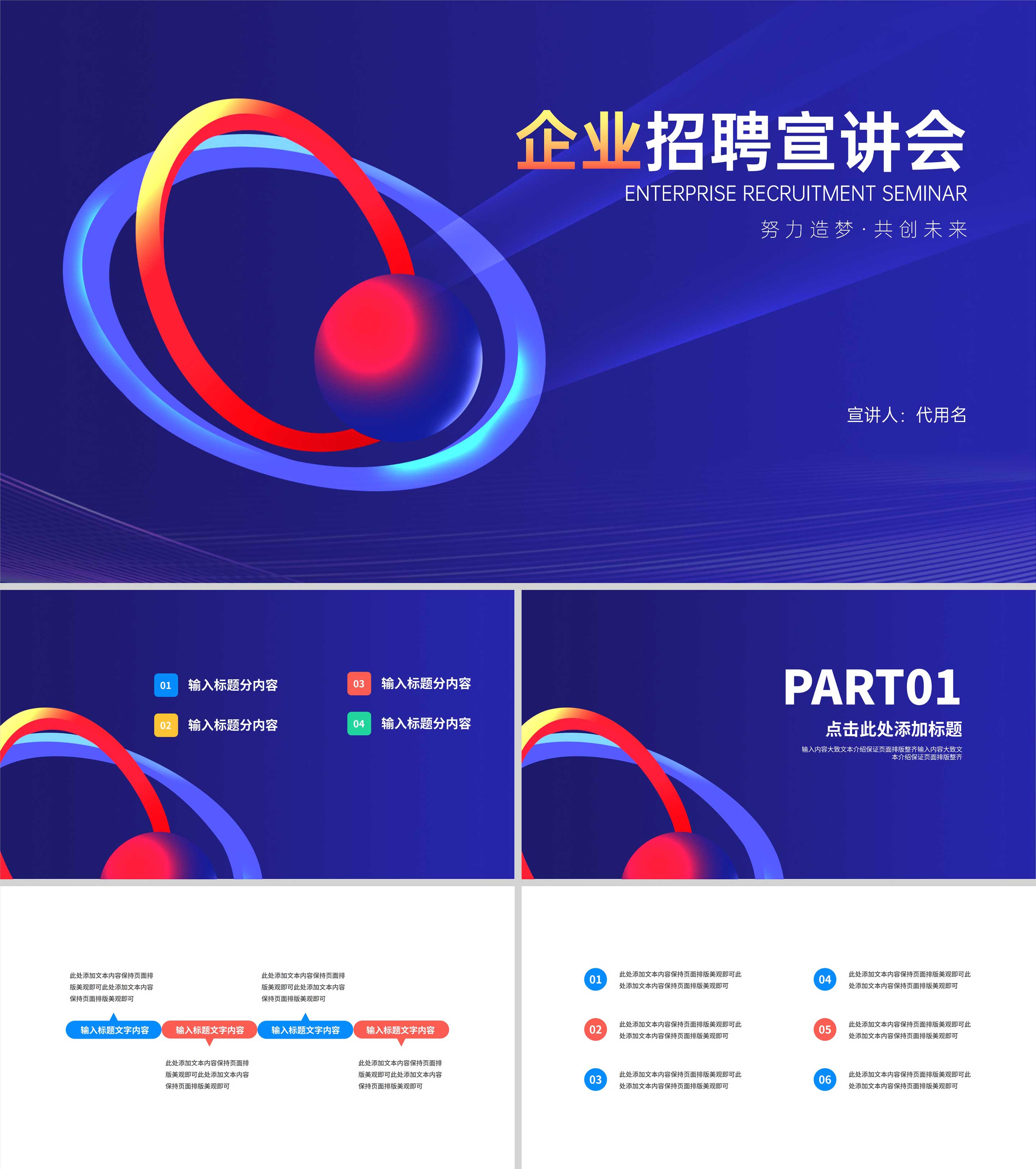 蓝色几何风星轨企业招聘宣讲会PPT模板