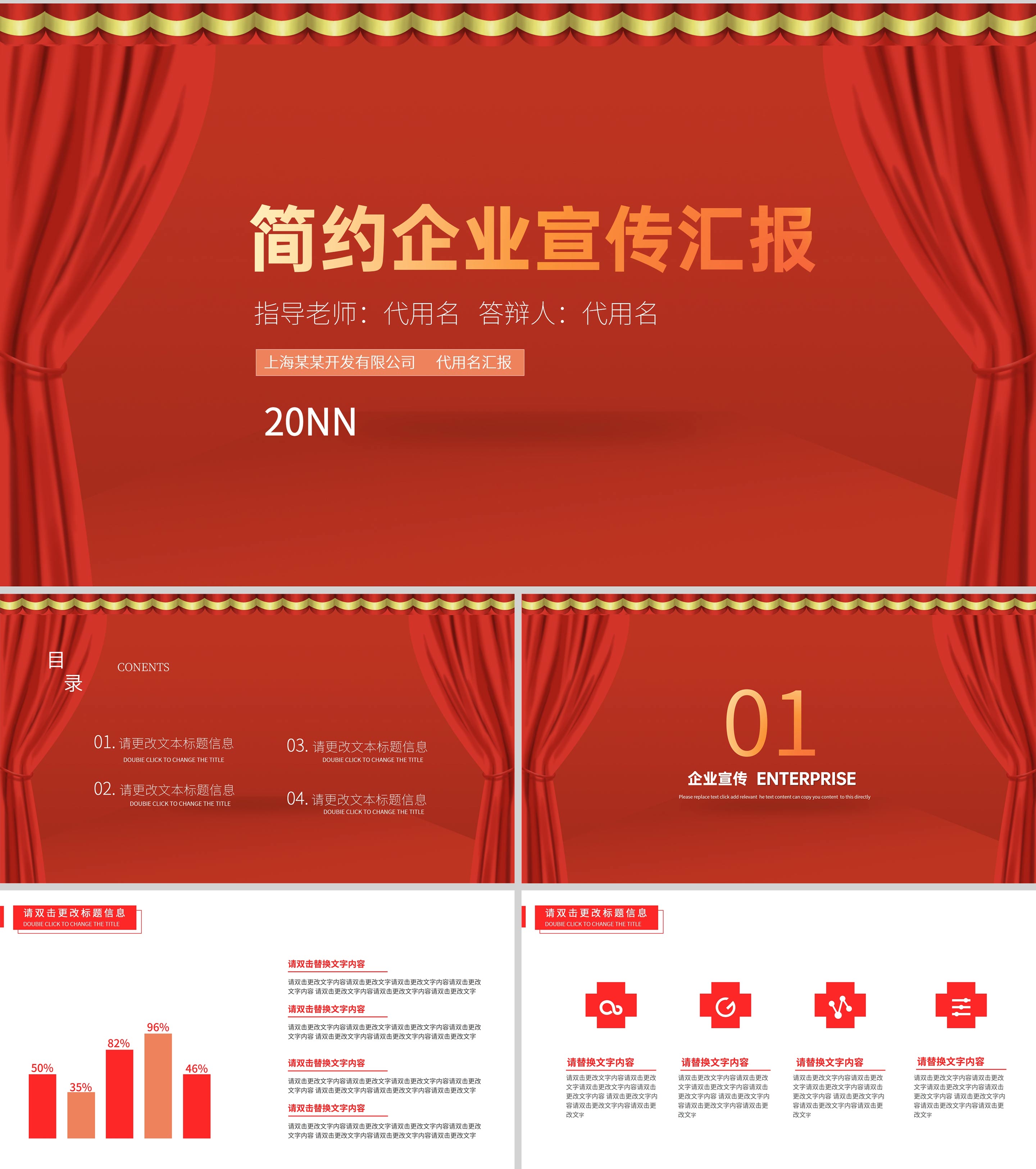 红色简约风企业宣传汇报PPT模板