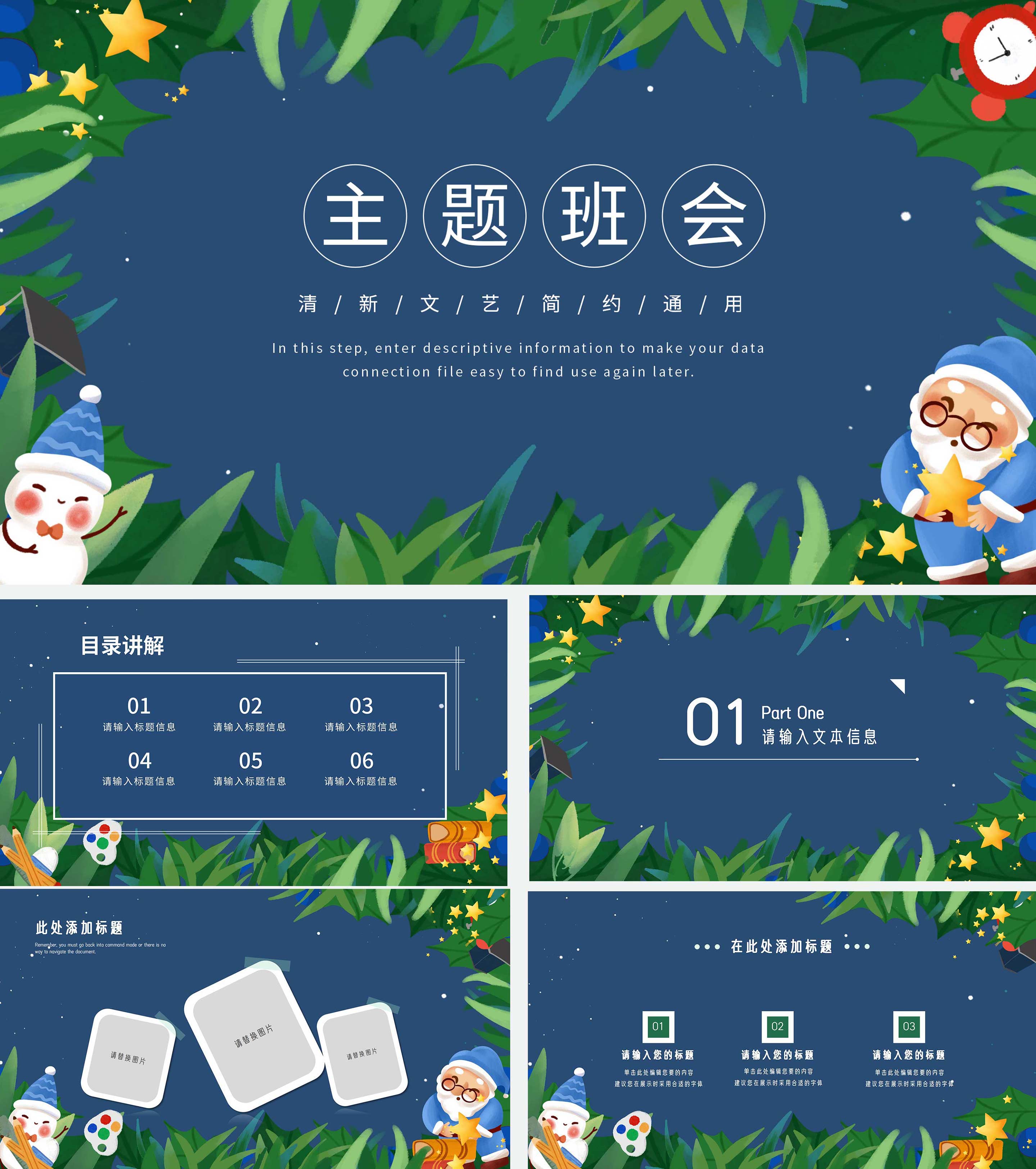 蓝色插画风八年级英语上册更强教学课件PPT模板