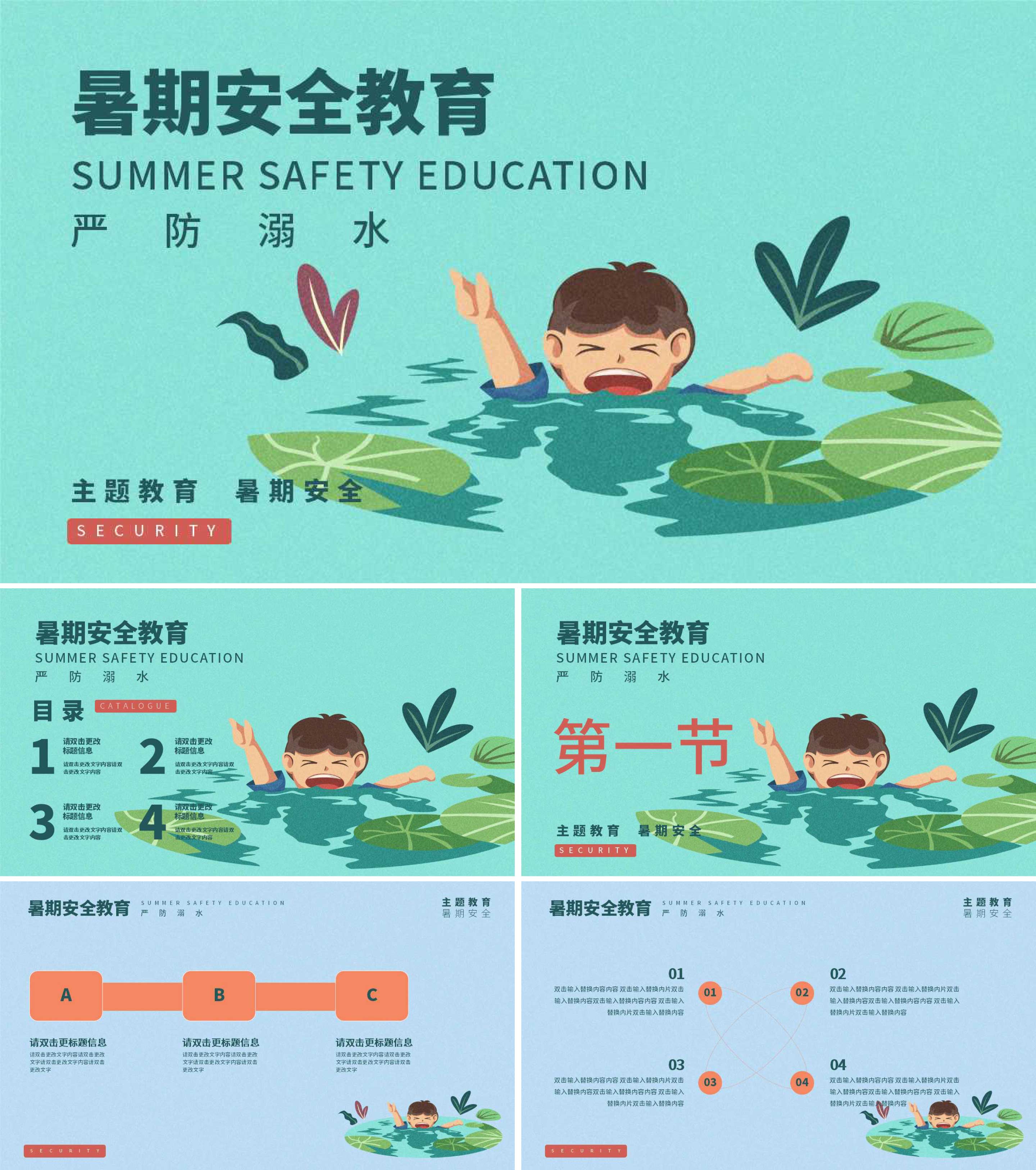 蓝色卡通风路障暑假安全教育汇报PPT模板