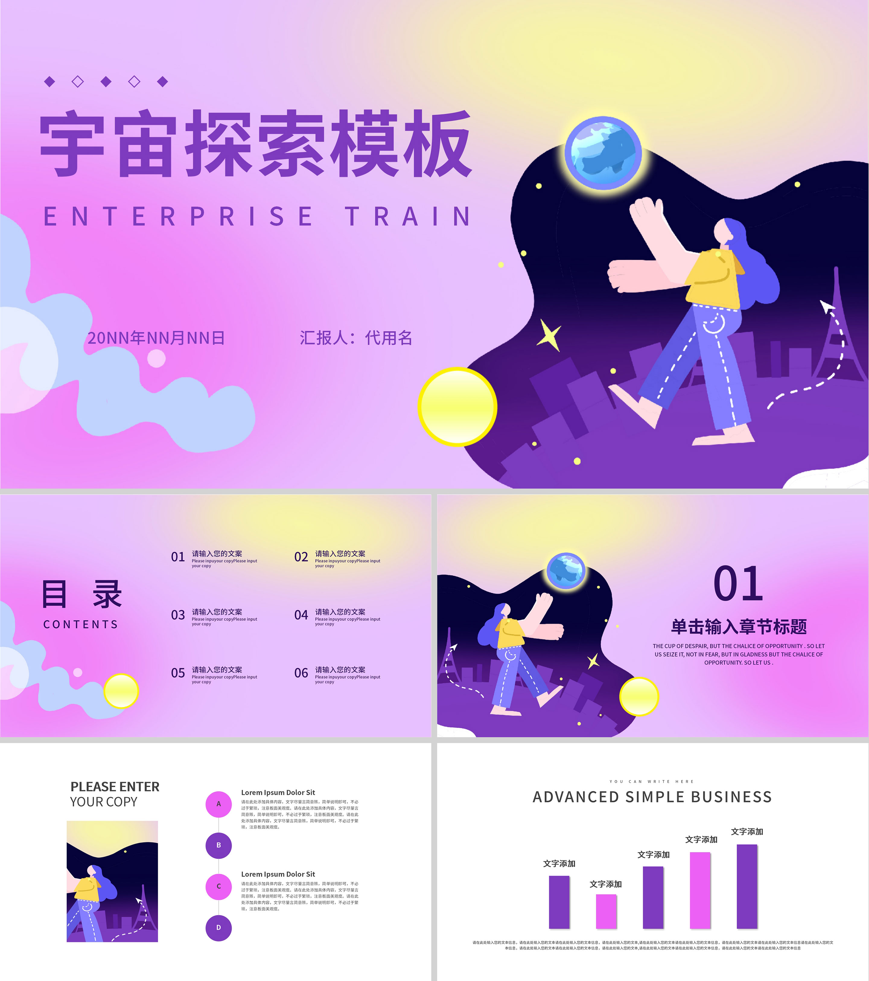 橘粉色卡通可爱小女孩教学课件PPT模板