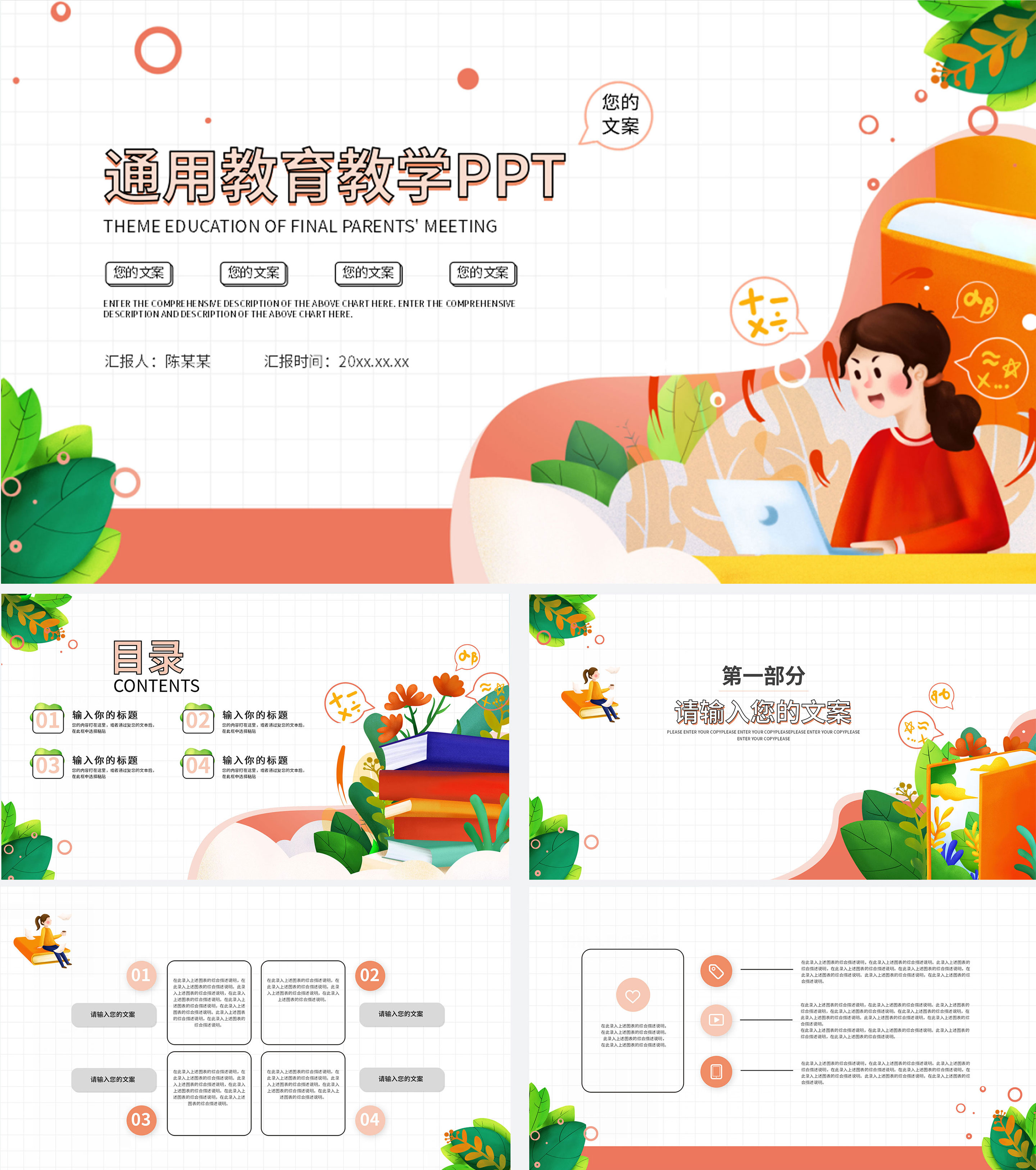 小清新绿色家长会PPT模板