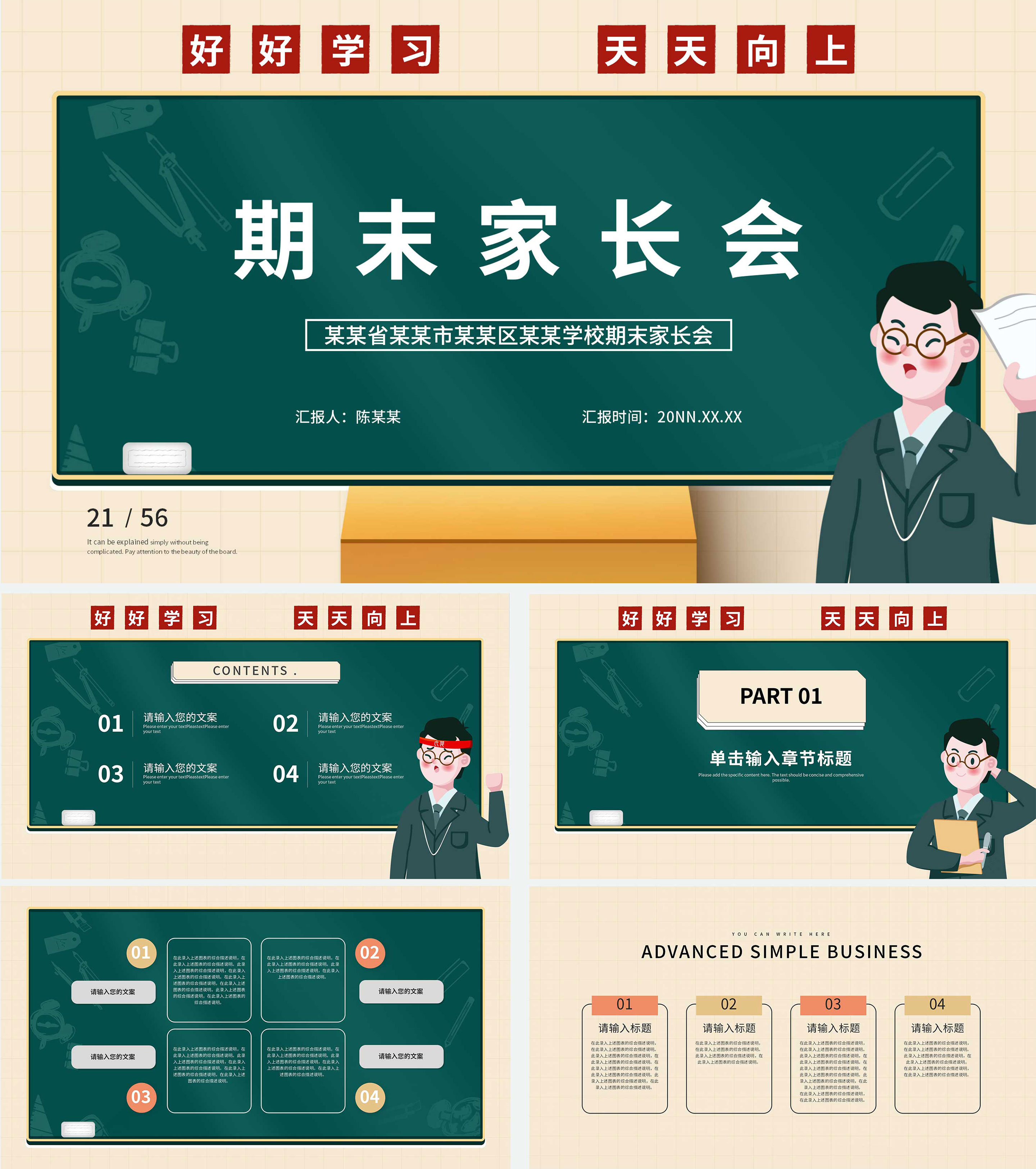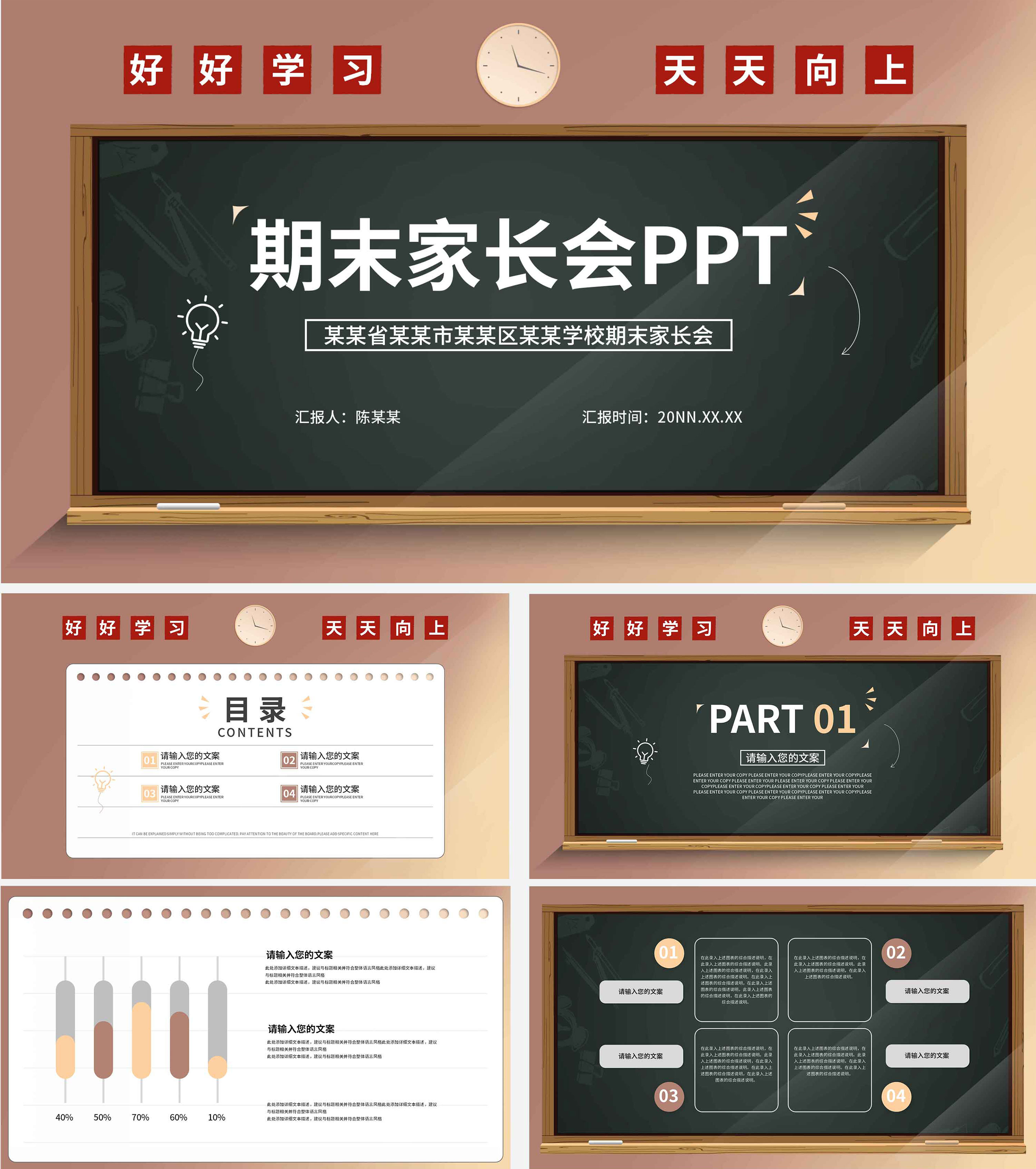 小清新校园期末家长会PPT模板