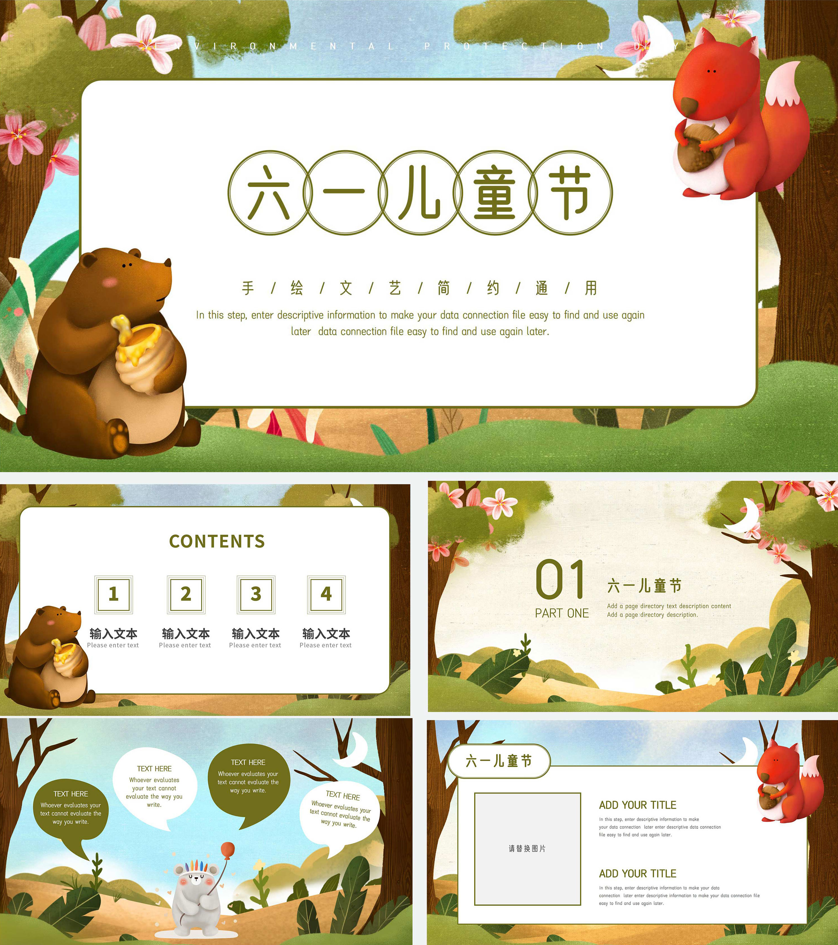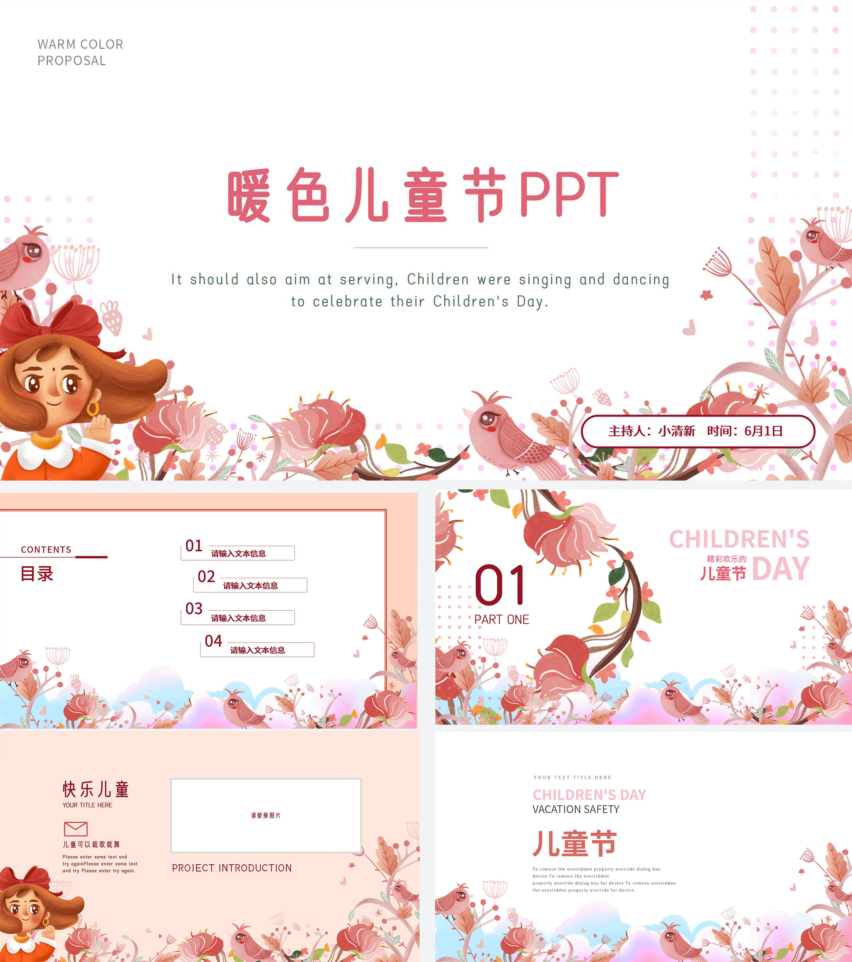 小清新暖色可爱儿童节PPT模板