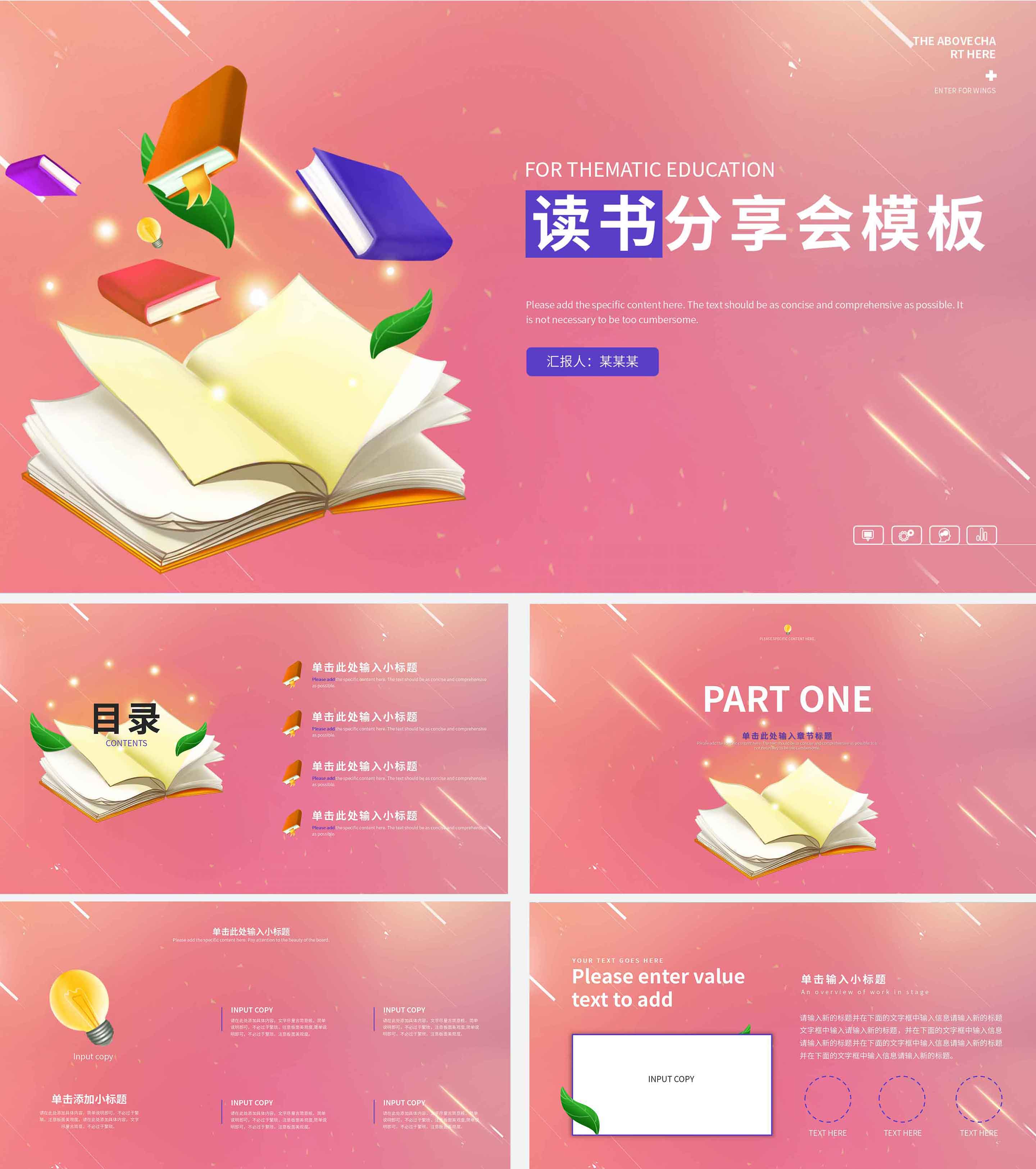 粉色读书分享会PPT模板