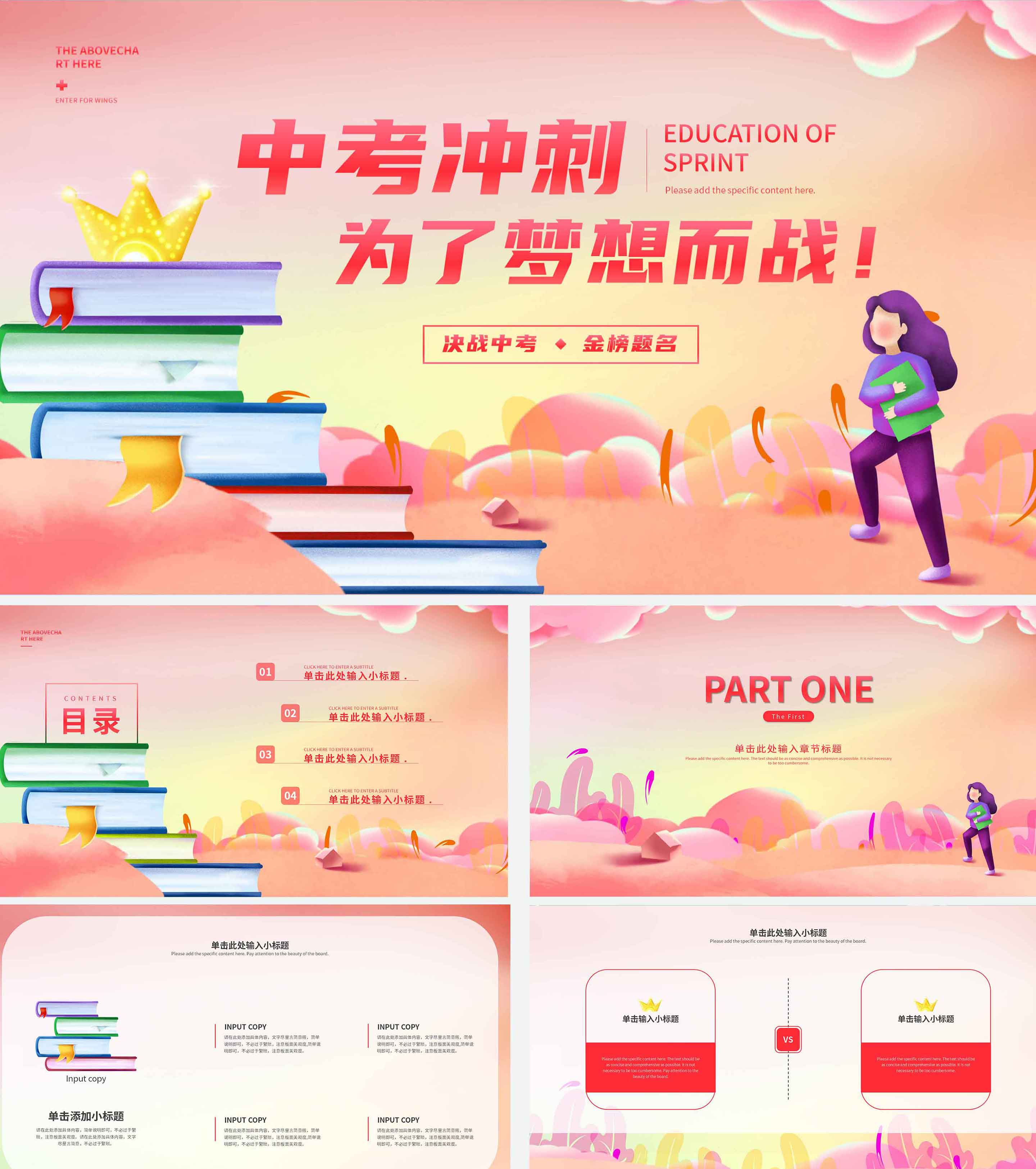 粉色浪漫唯美中考冲刺PPT模板