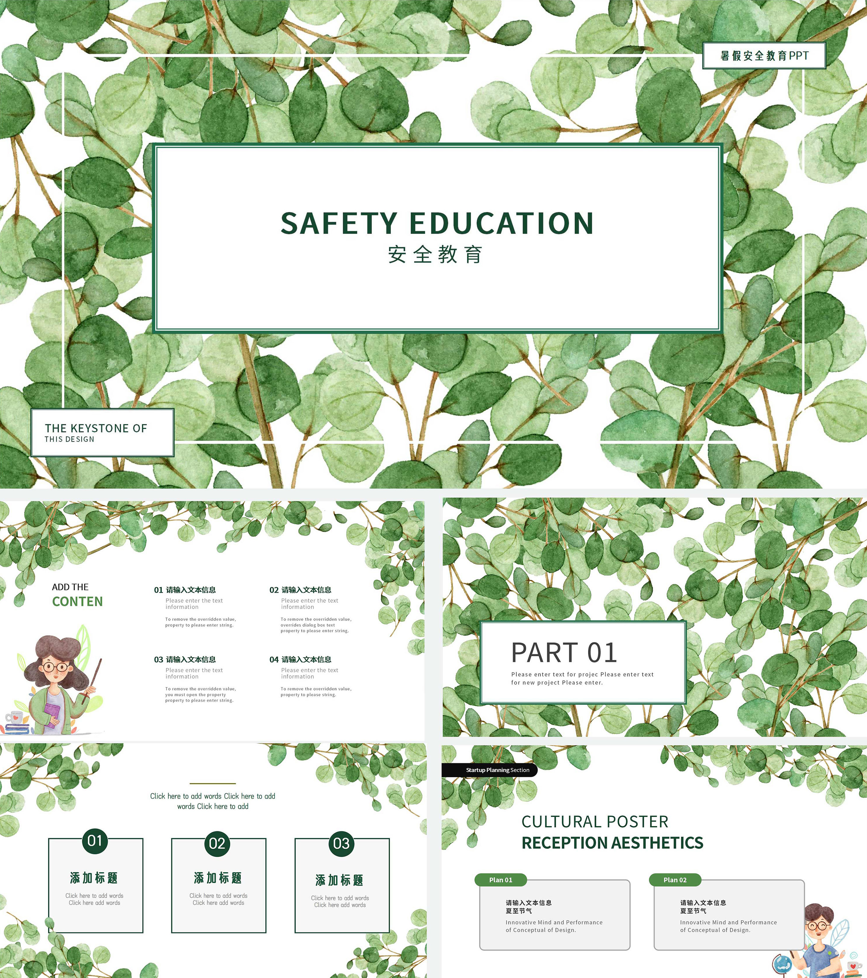绿色小清新暑假安全教育PPT模板