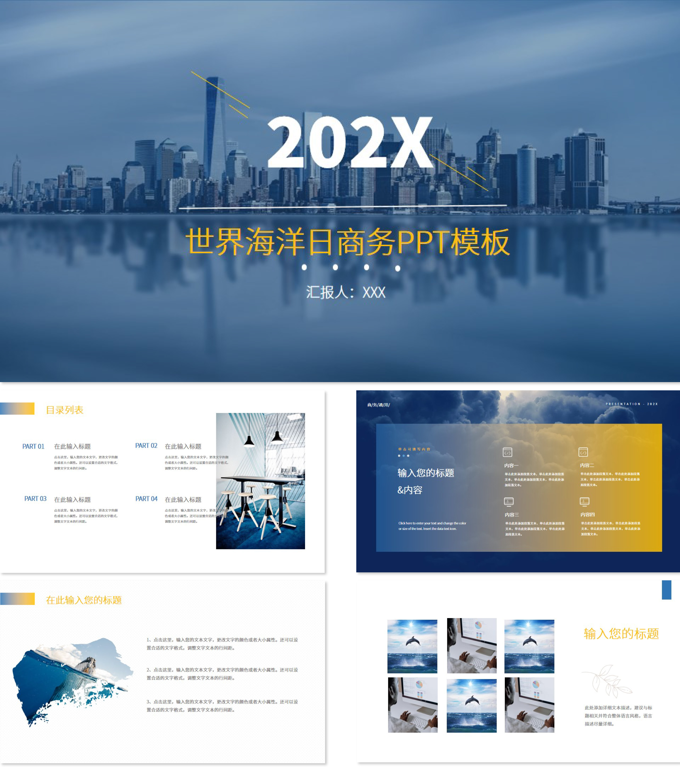 商务风格世界海洋日PPT模板
