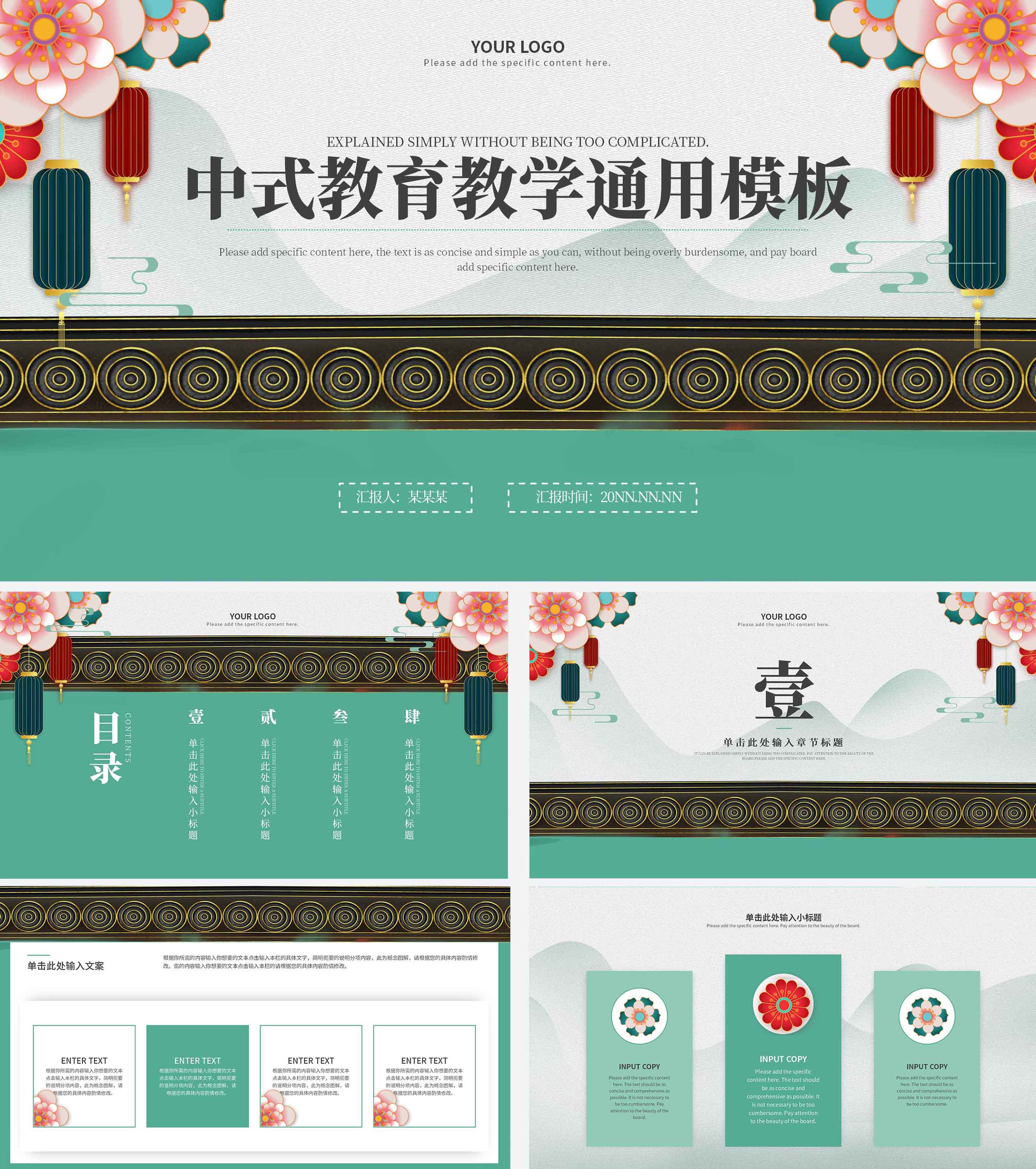 绿色古风中式教育教学通用PPT模板