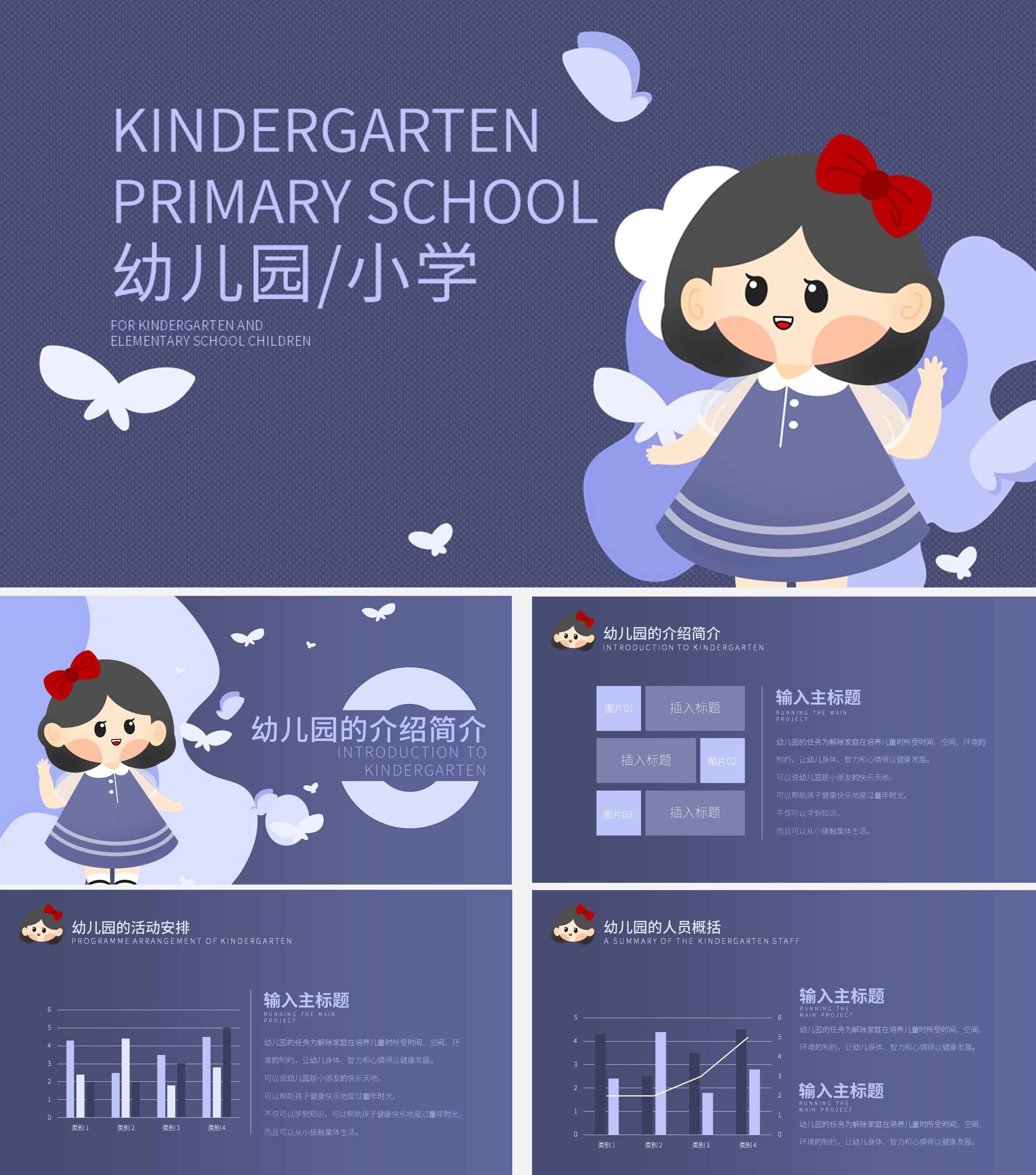 紫色卡通公主幼儿园小学PPT模板
