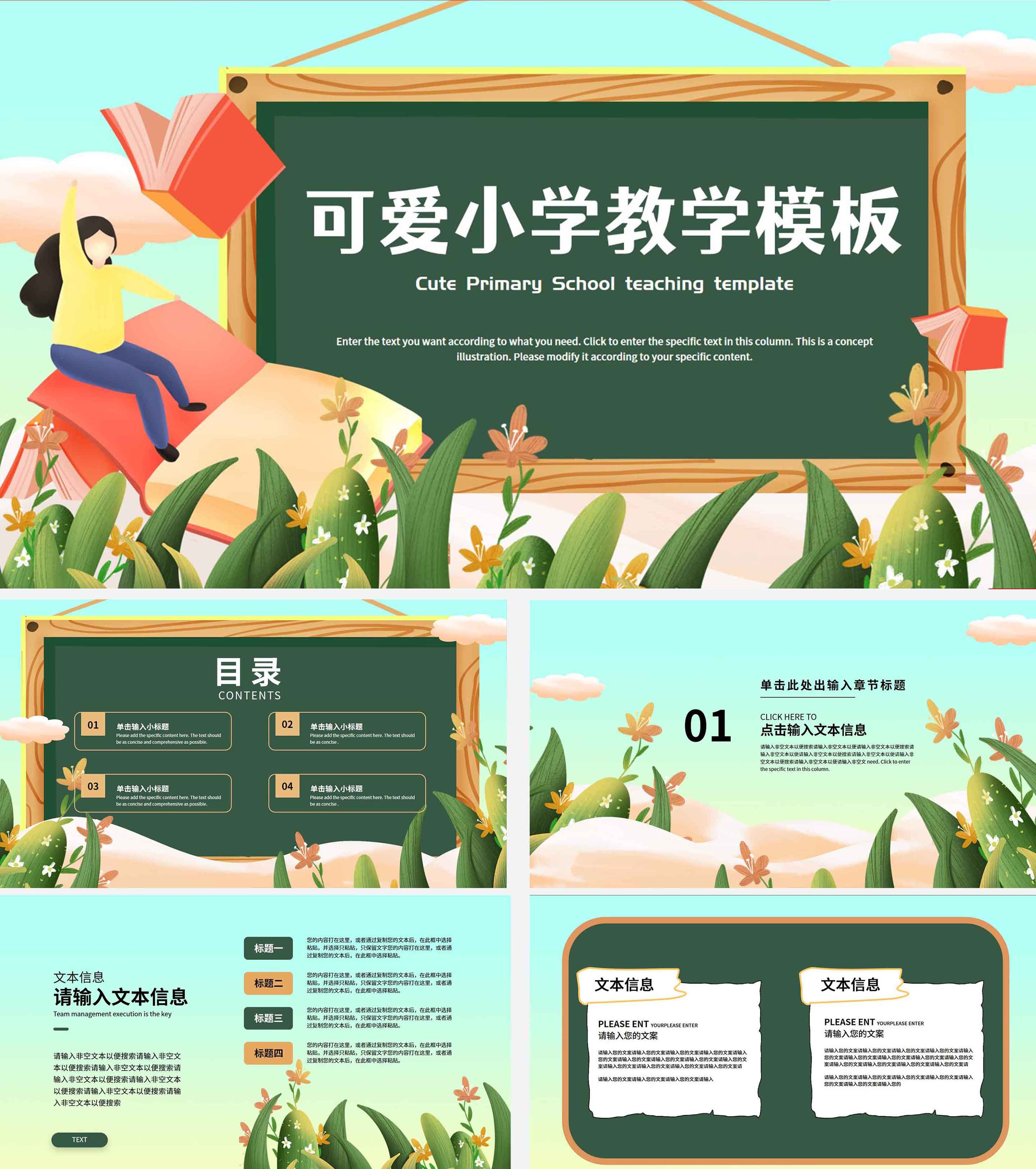 小清新浅色卡通教学PPT模板
