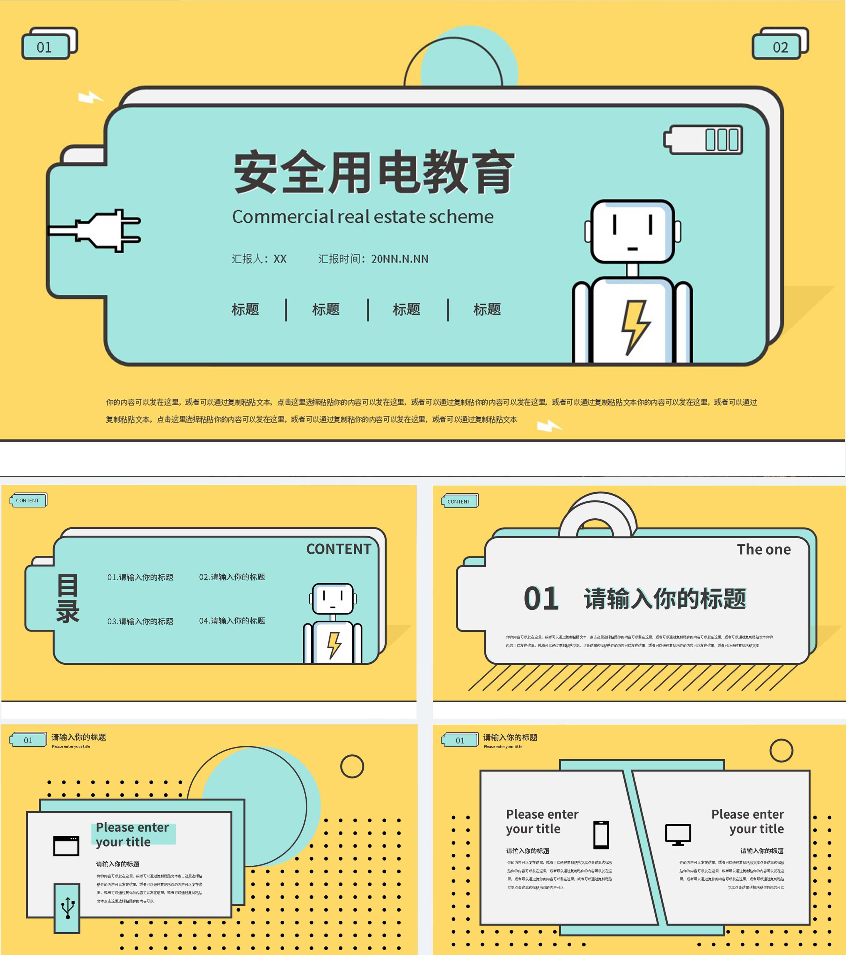 黄色卡通安全用电教育PPT模板