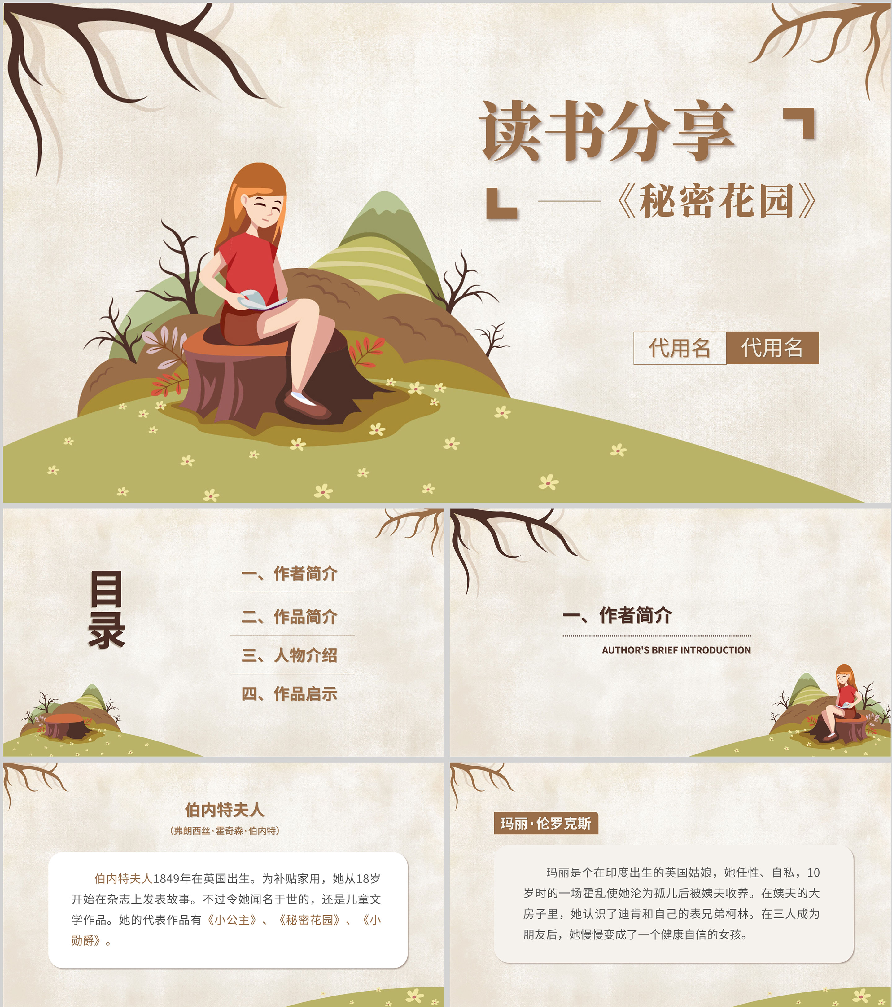 卡通《秘密花园》读书分享汇报PPT模板