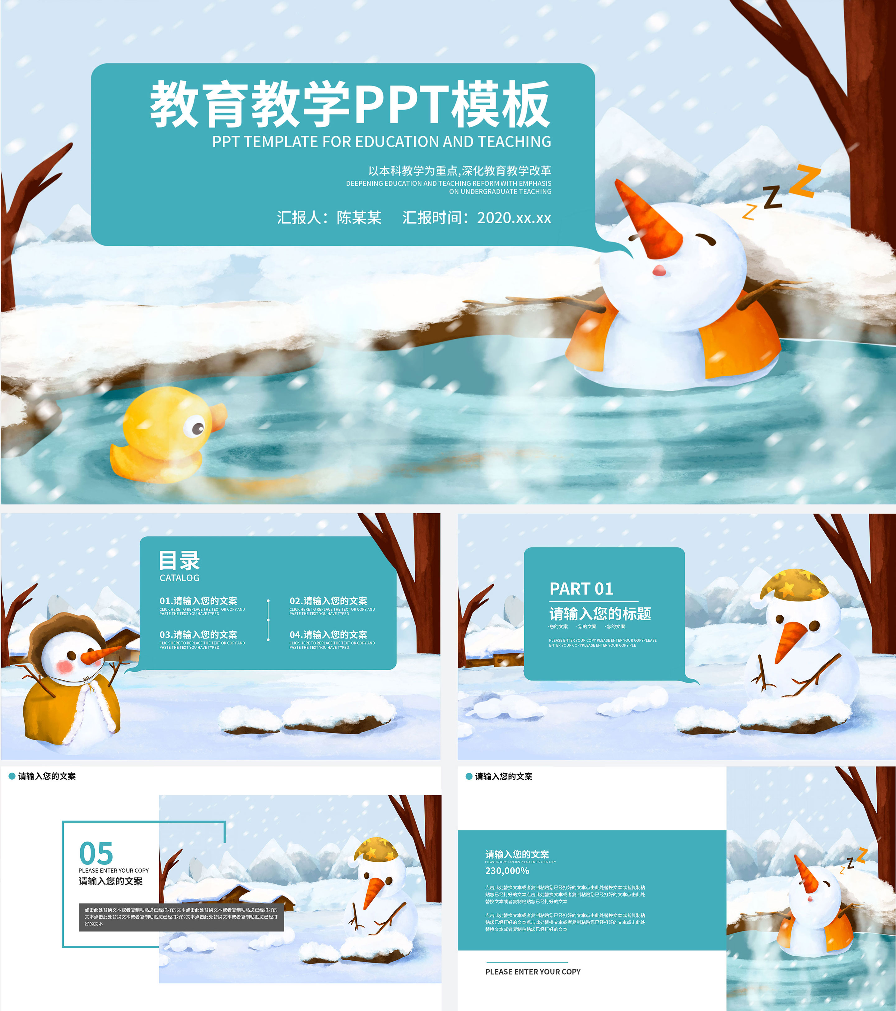 卡通雪人教育教学PPT模板
