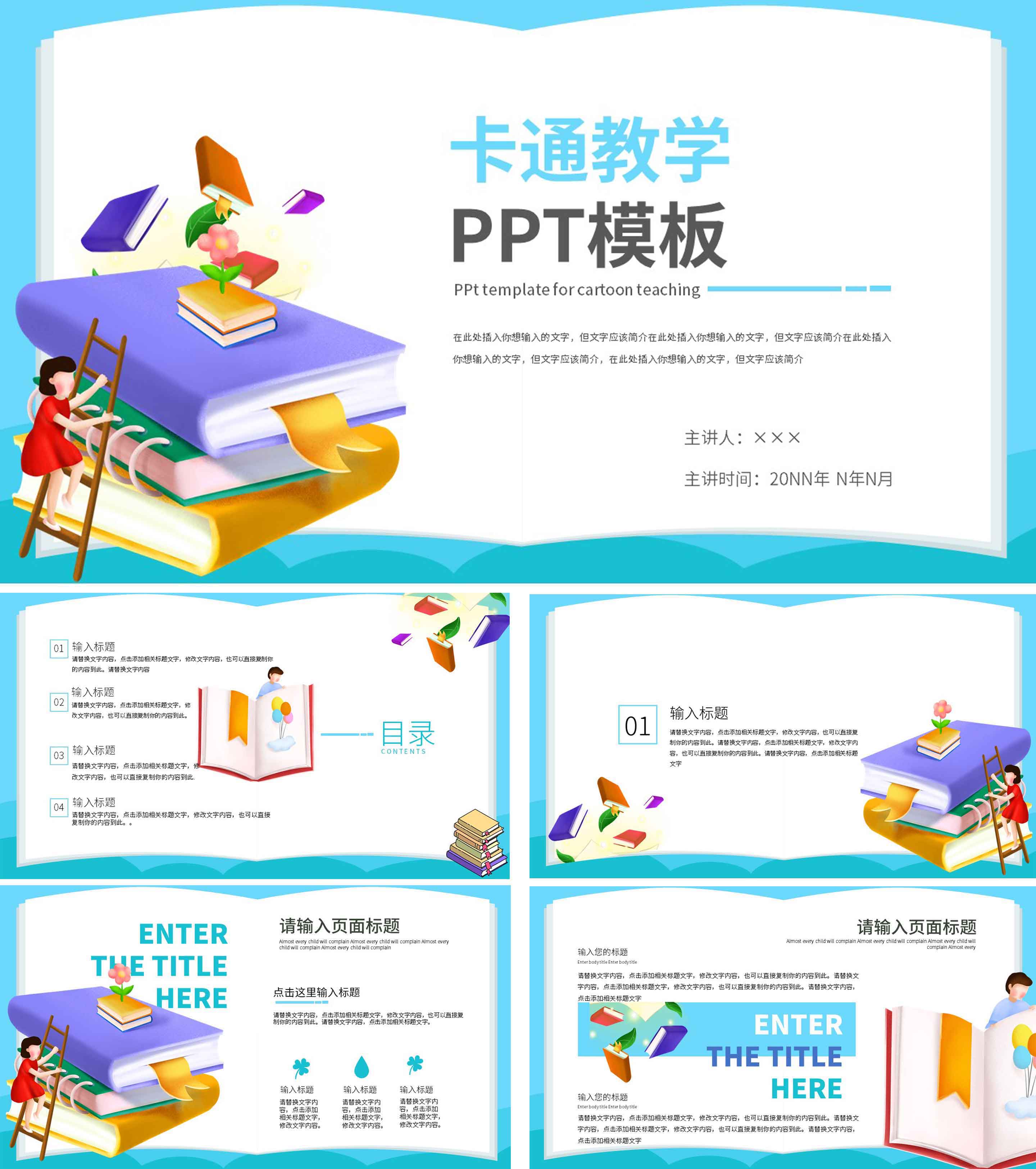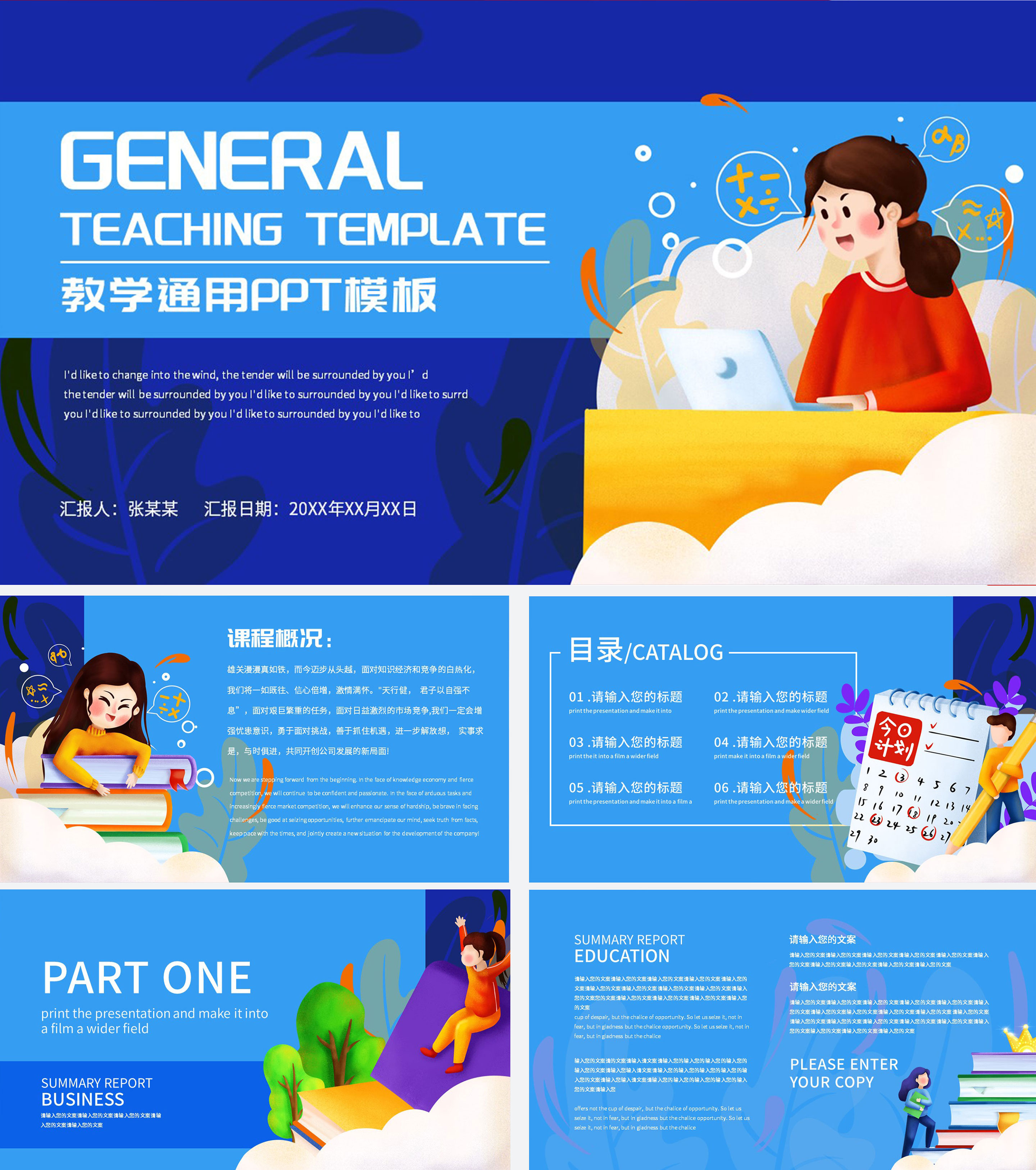 蓝色卡通教学ppt模板