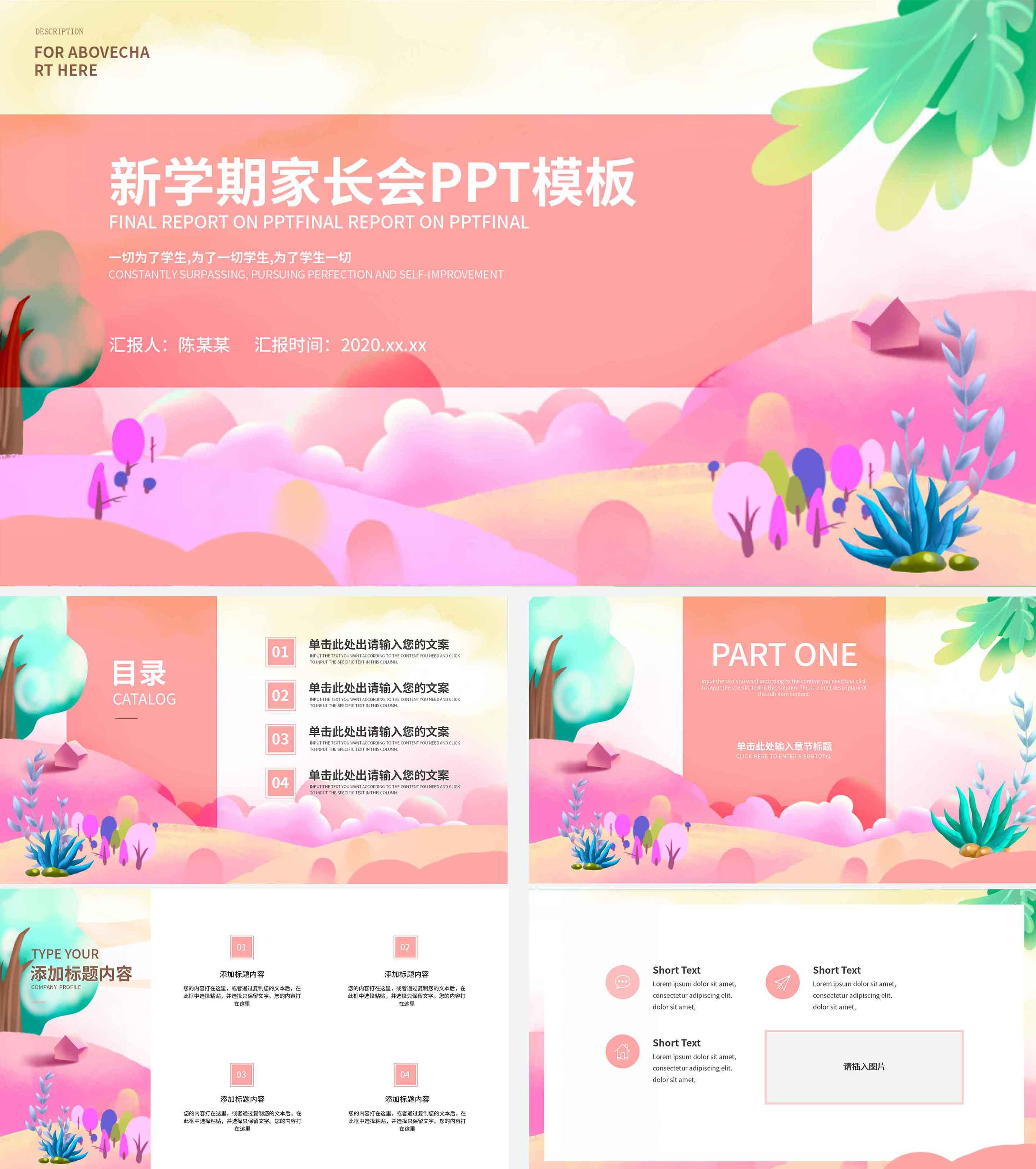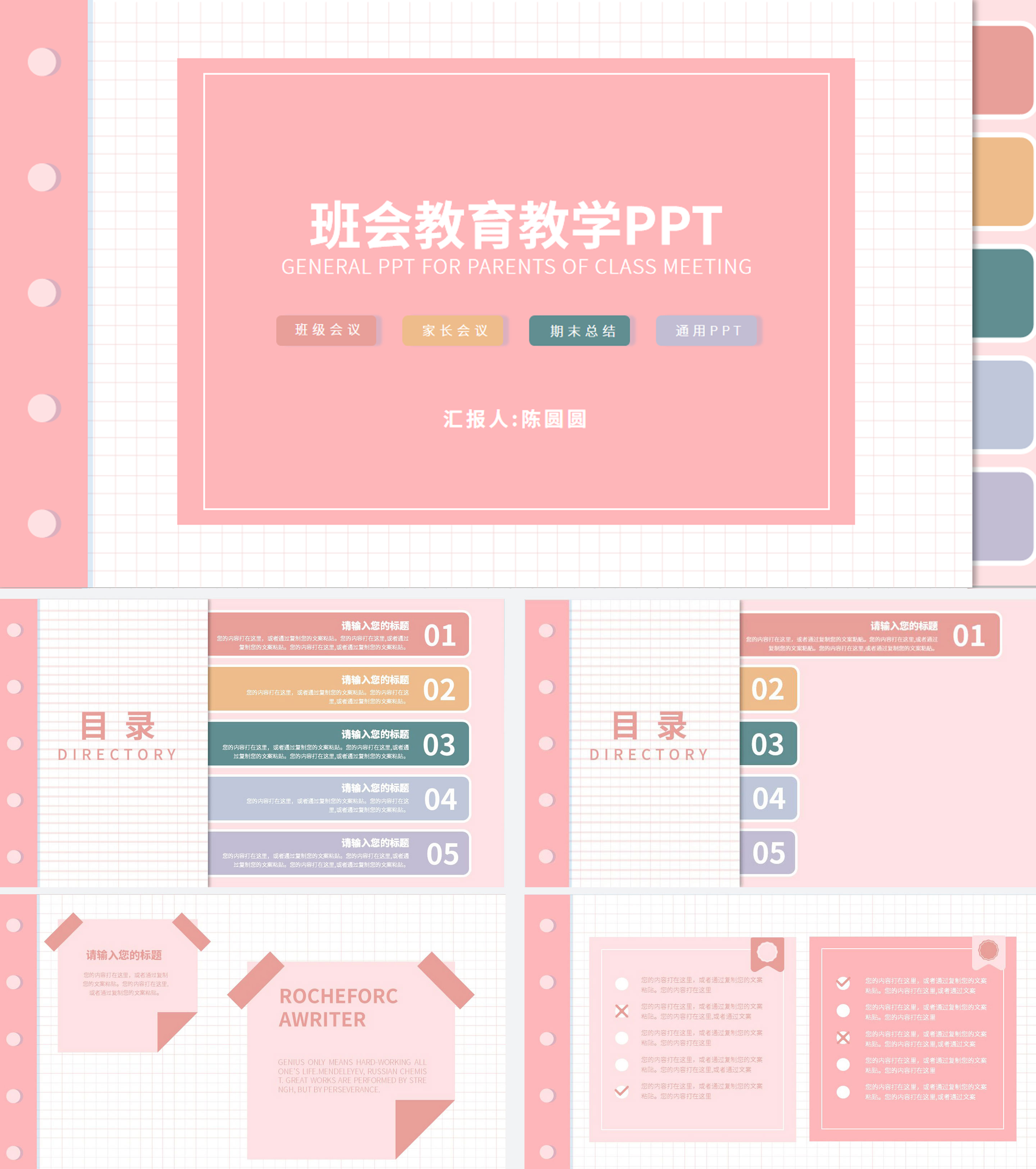 粉色清新班会教育教学PPT模板