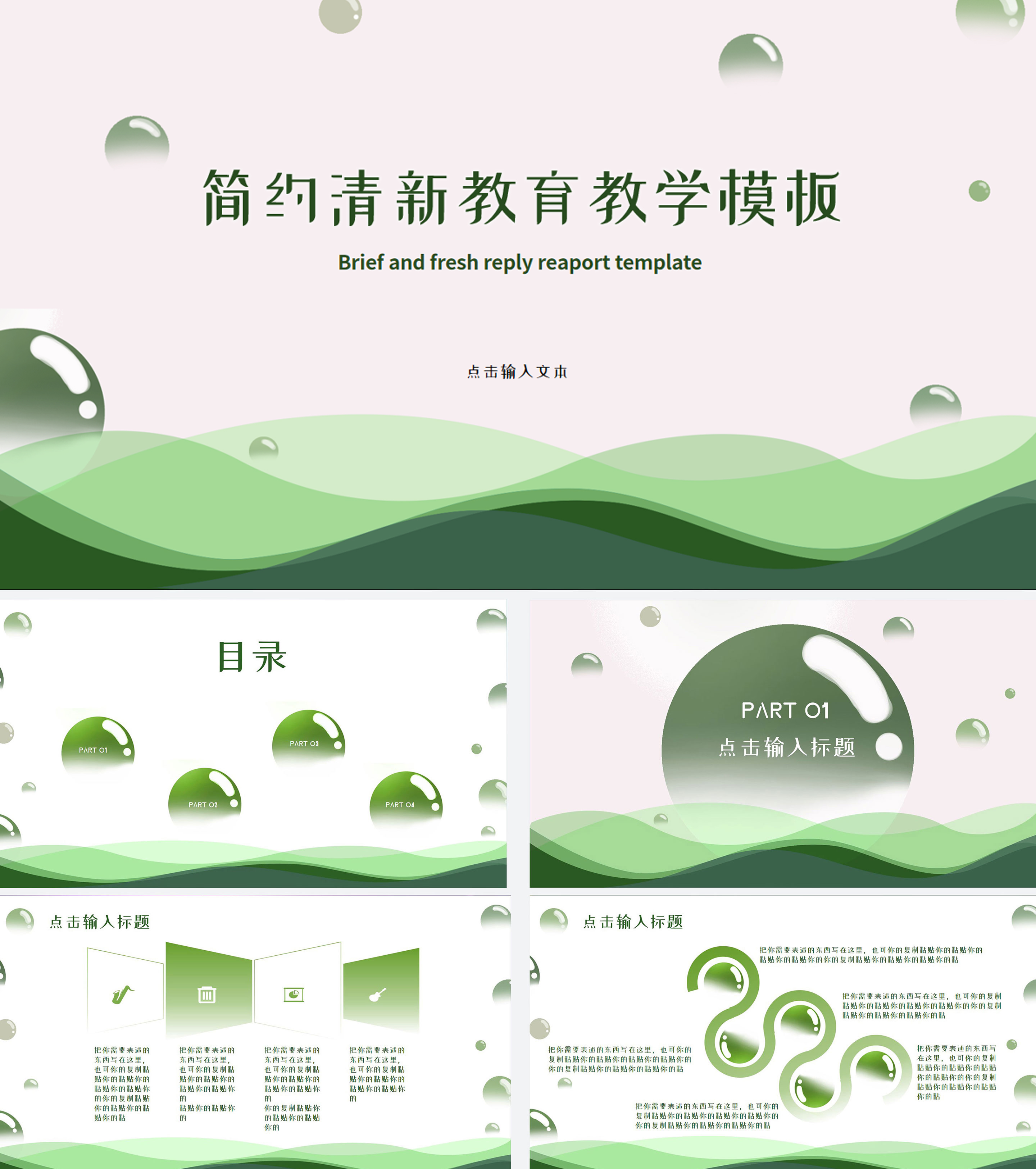 绿色清新气泡教学PPT模板