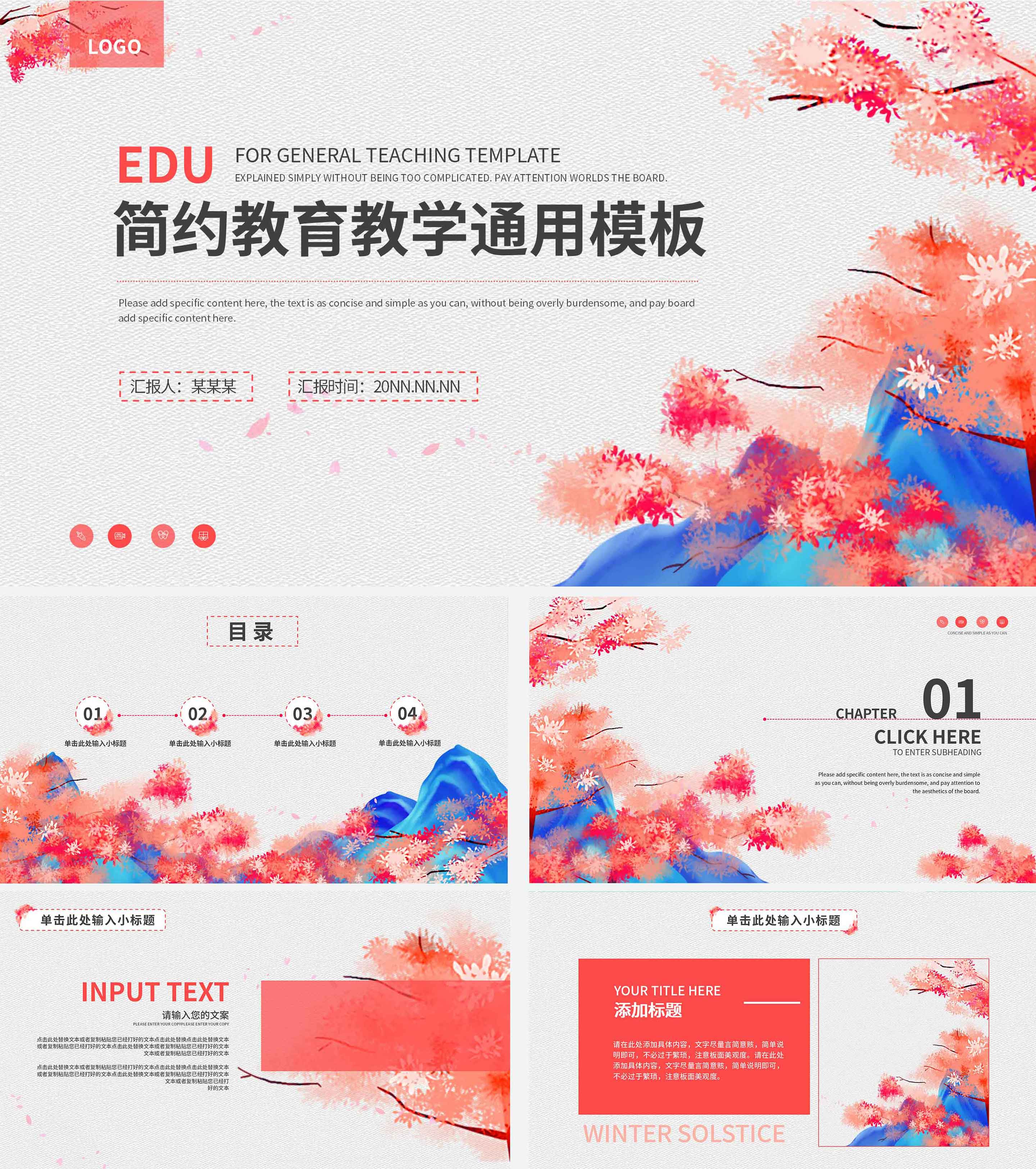 白色简约风教育教学PPT模板